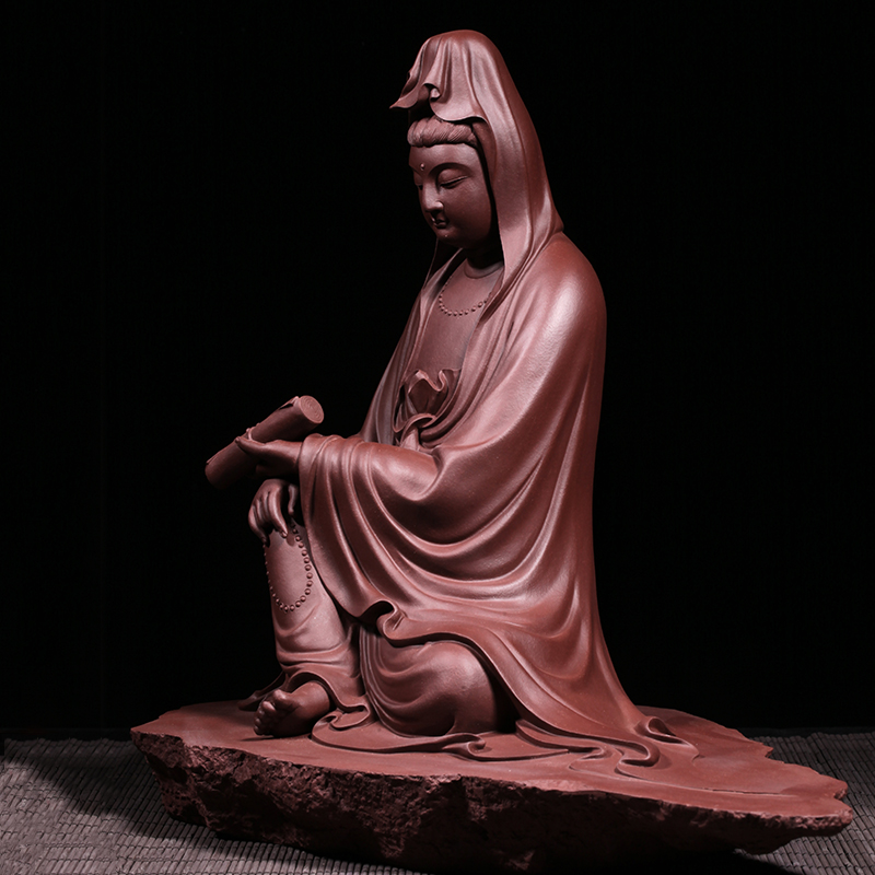 宜兴紫砂 雕塑 茶宠 摆件 精品雕塑 王国文制 持经观音
