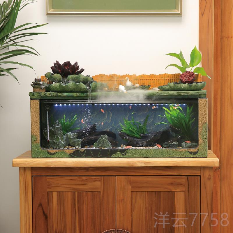 高档匠心坊中式微复古水景观鱼缸养造景客厅流摆件电视柜旁鱼创意