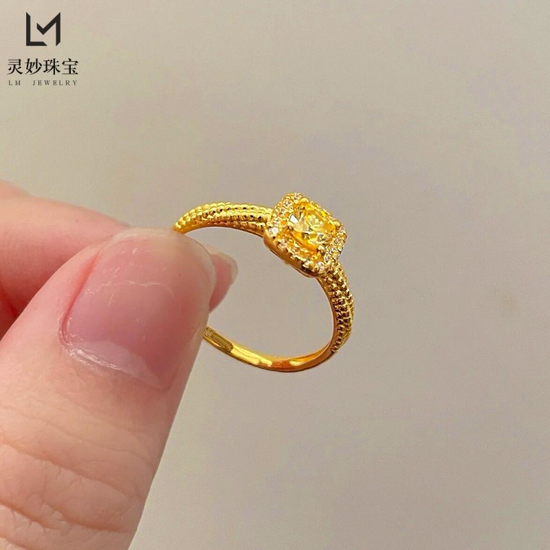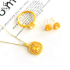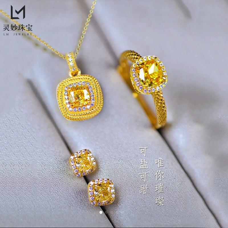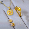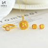 金店同款小方糖吊坠项链黄钻戒指耳钉套装厚镀18K轻奢送女友礼物