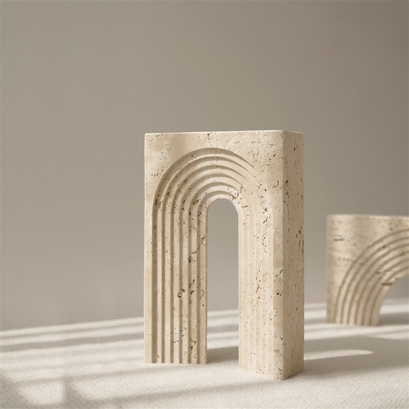 欧式宅寂风天然洞石几何摆件酒店样板间别M墅桌面玄关家居软装饰