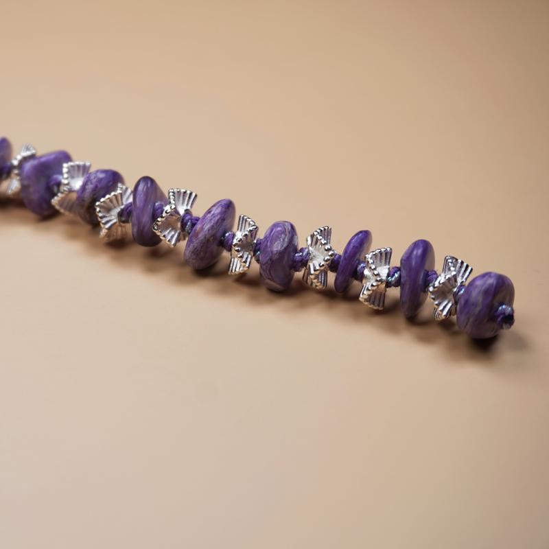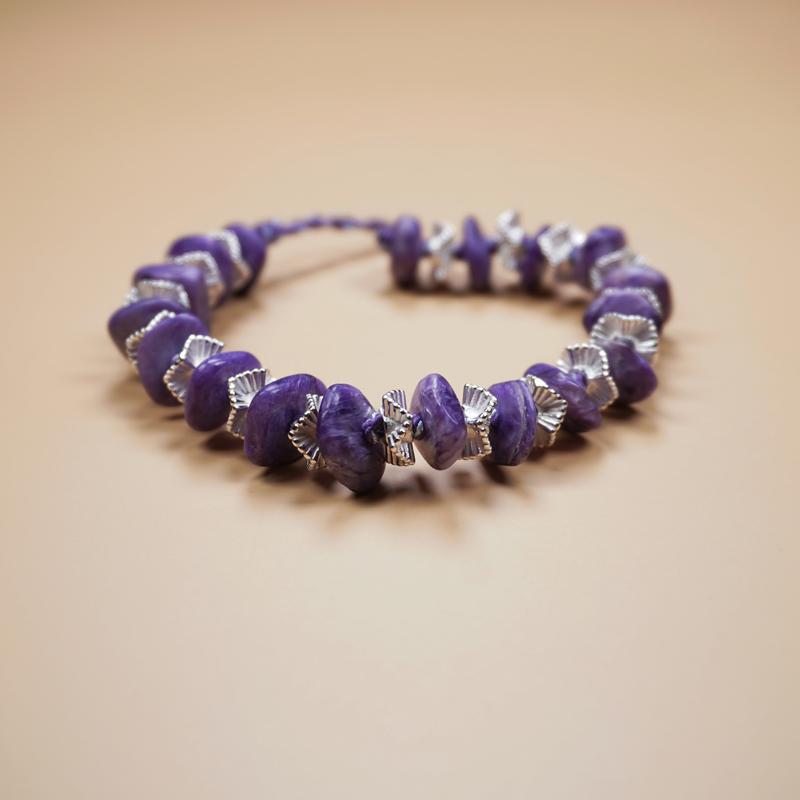 天然紫龙晶手链女款S925银手工编织紫色水晶串珠编绳单圈手串手绳