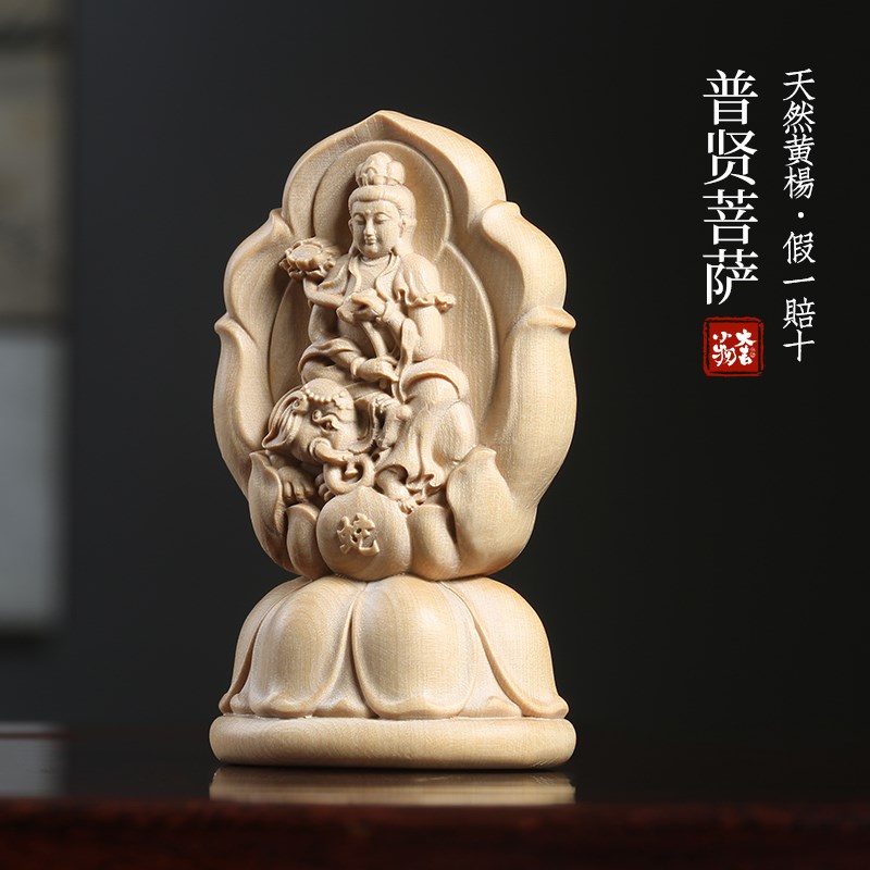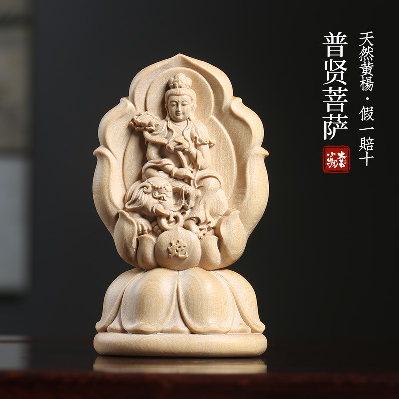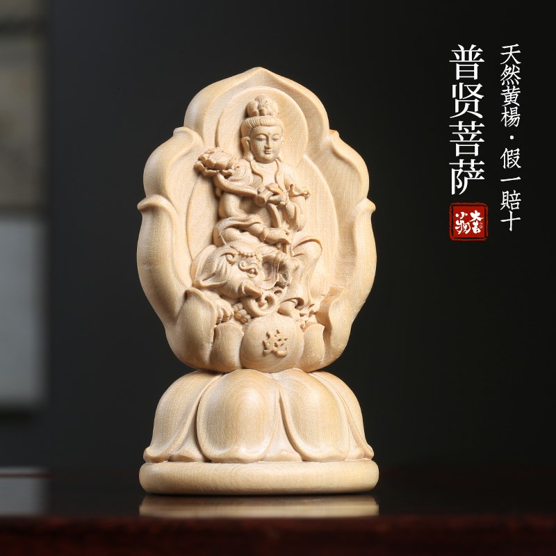 小叶黄杨木雕刻普贤菩萨桌面摆件生肖龙蛇本命蛇年V守护神菩萨摆
