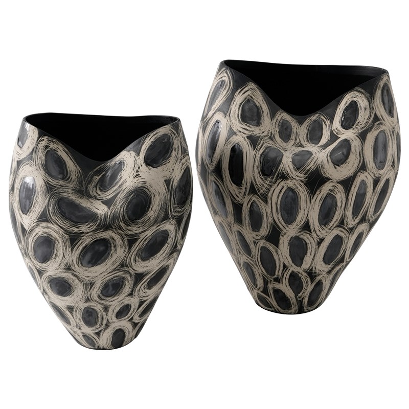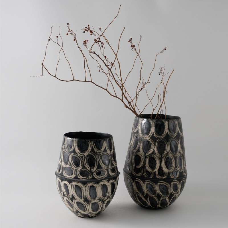 新中式现代创意圆圈纹陶瓷摆件样板间售楼处书房客厅W玄关桌面摆