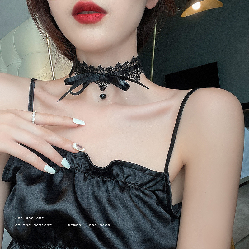 黑色蕾丝超仙公主气质项圈项链女轻奢小众冷淡风网红蝴蝶结锁骨链