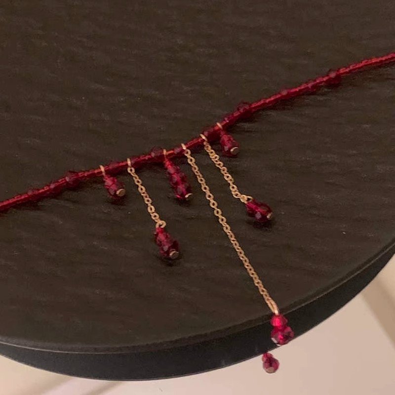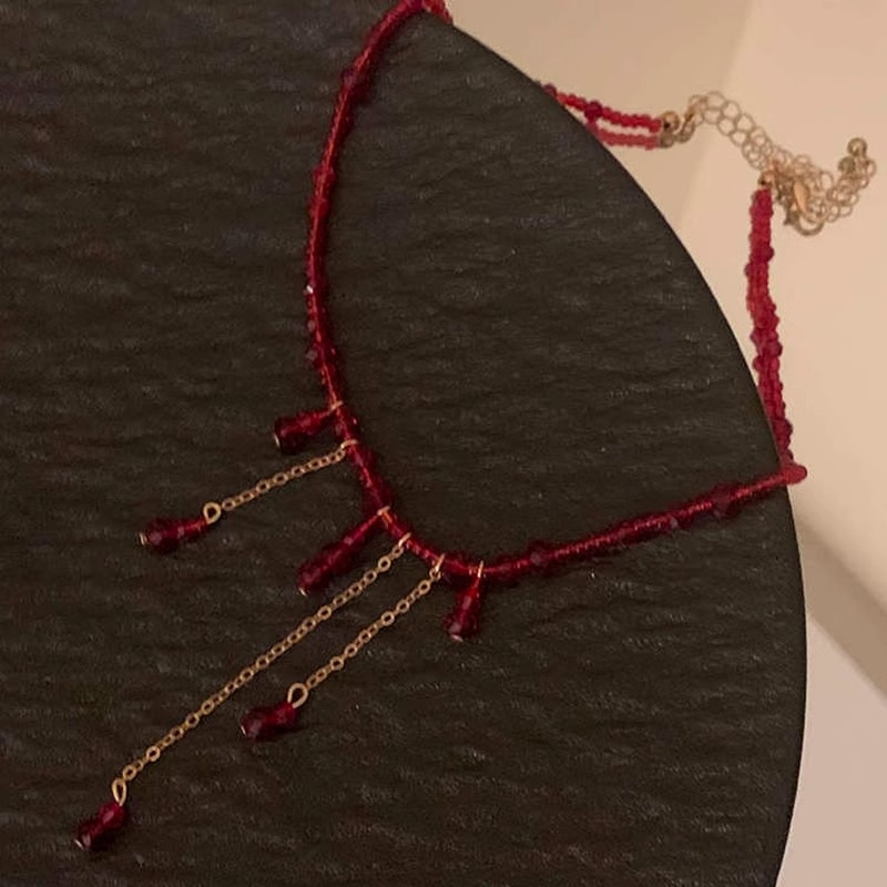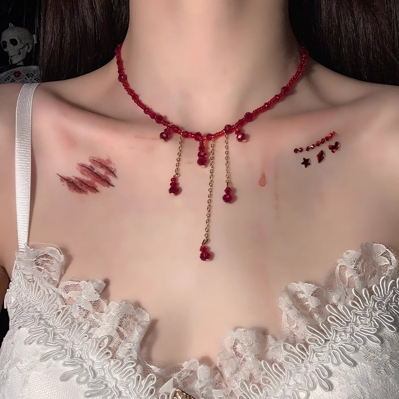 万圣节复古红色滴血水晶流苏项链小众设计感串珠锁骨链高级感颈链