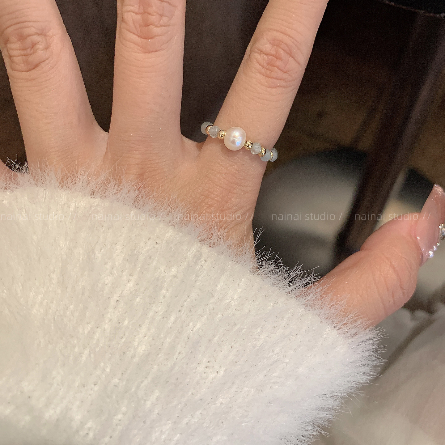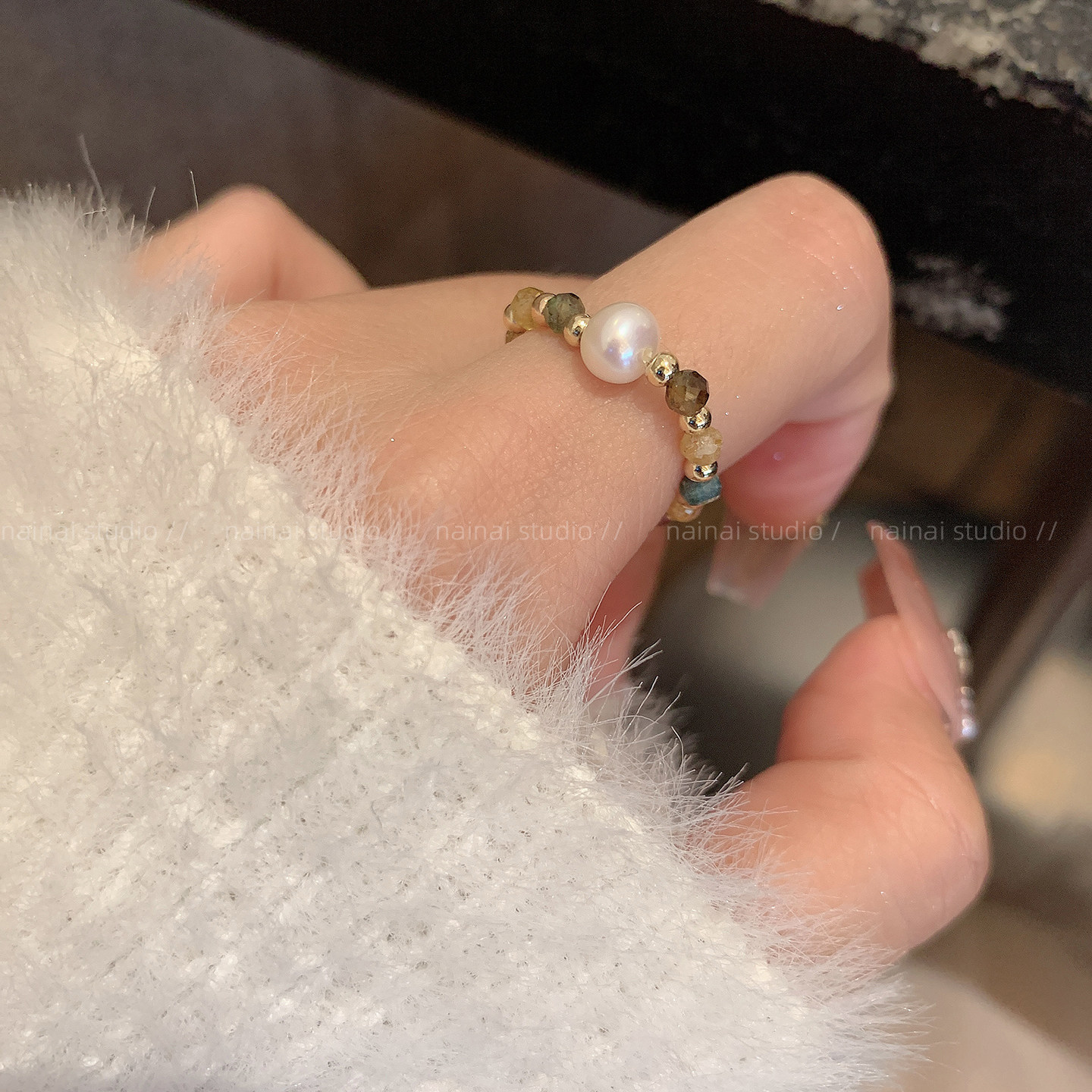 淡水珍珠戒指~彩色串珠食指戒小众设计高级感复古气质轻奢指环女A