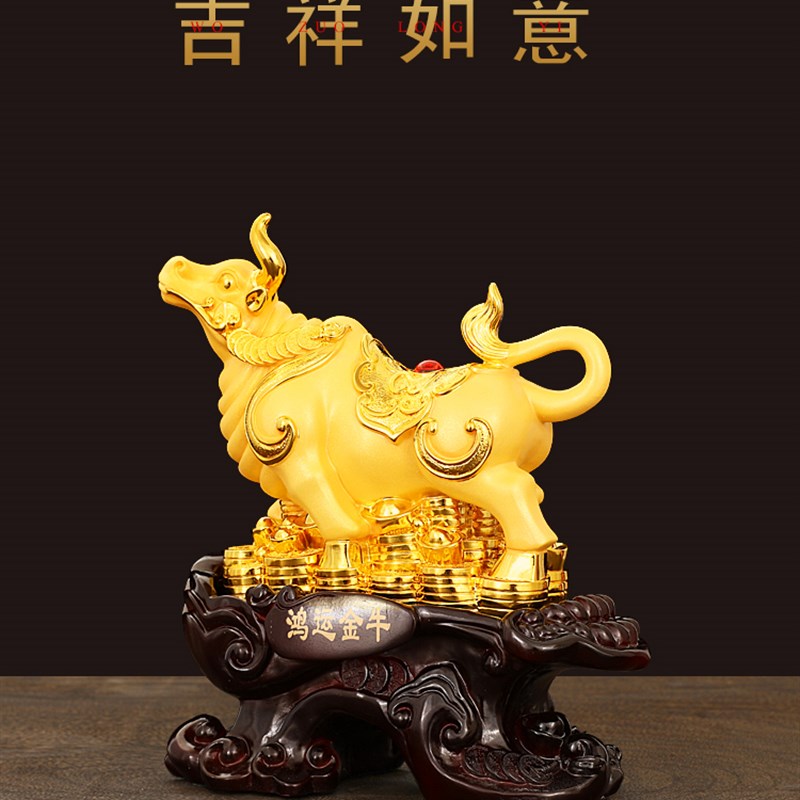 鸿运金牛摆件招财大号生肖家居装饰品办公室客P厅玄关摆设开业礼