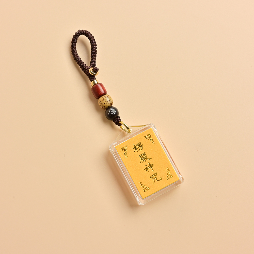 幸运四叶草挂绳楞严咒吊坠椭圆形楞严挂饰五会全文汽车钥匙扣挂件