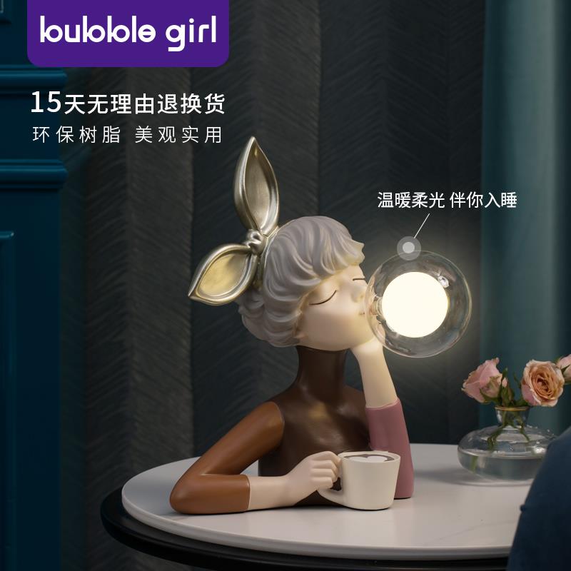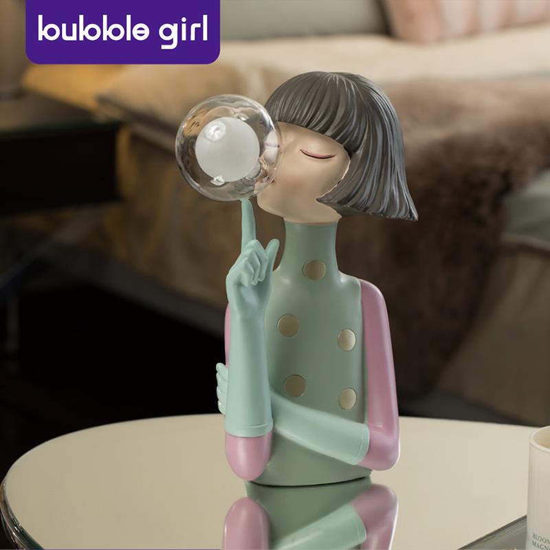 吹泡泡女孩台灯摆件创意小夜灯卧室床头柜书房家居装饰品氛围灯