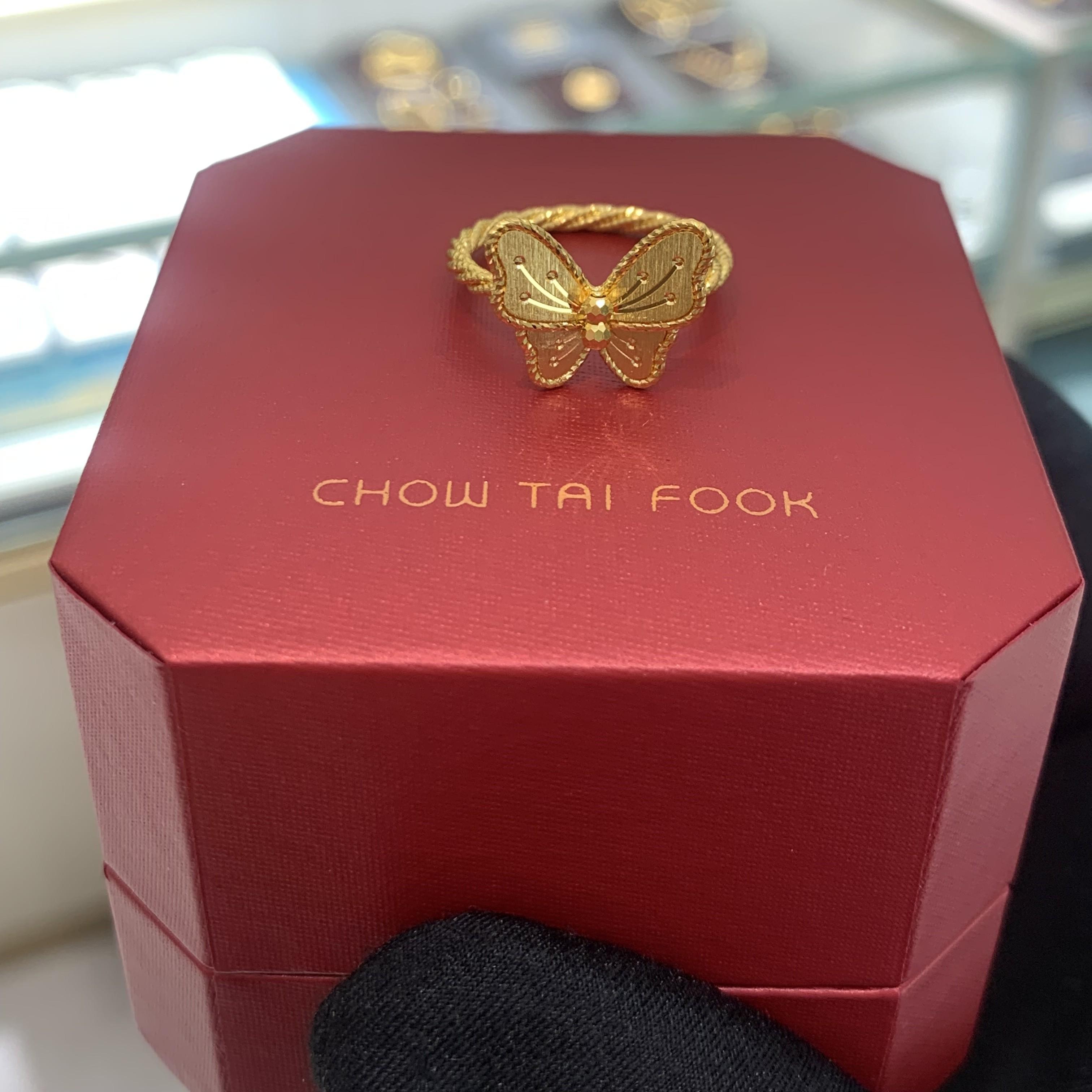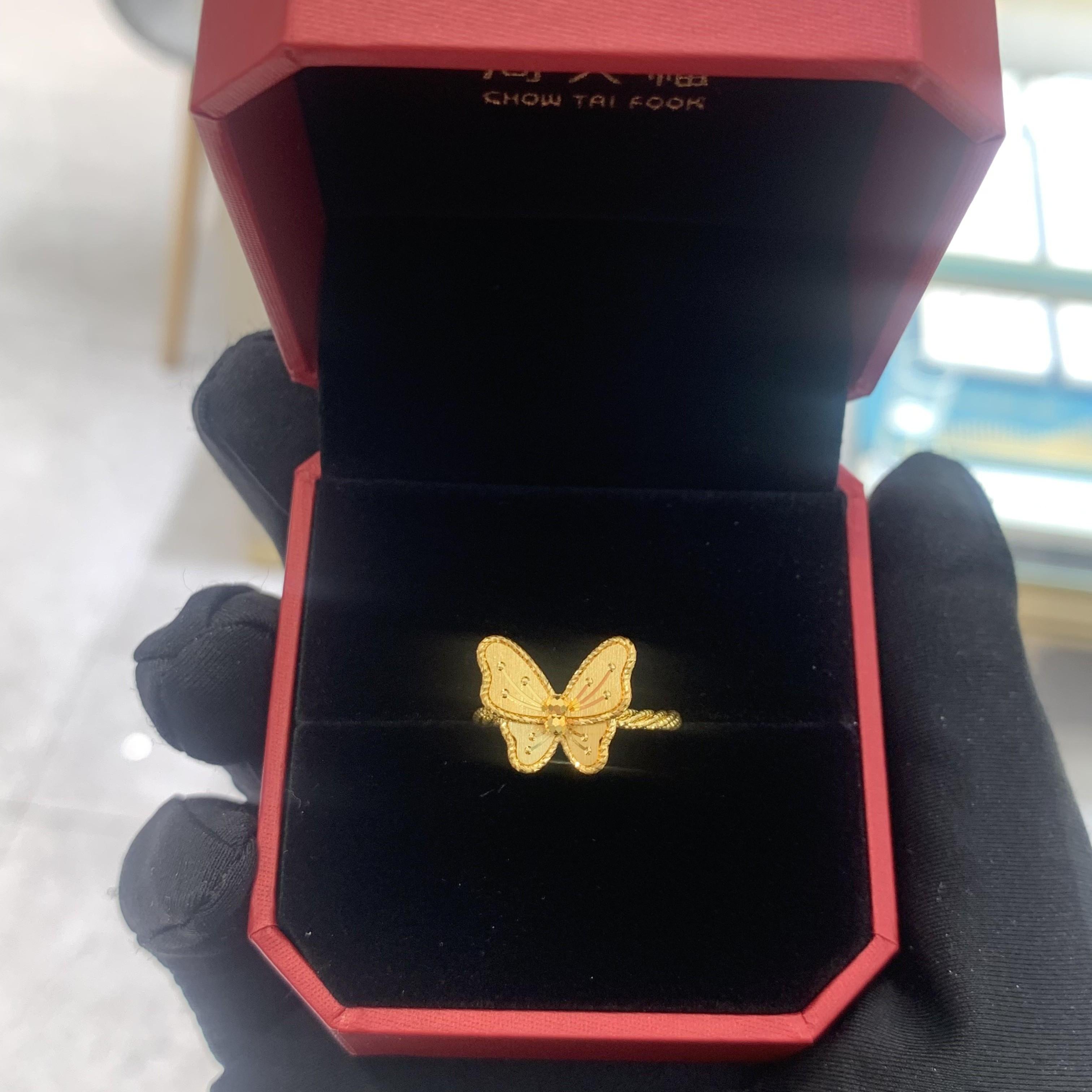 周大福代购 花月佳期系列梦蝴蝶足金黄金戒指 克减80计价 F233716