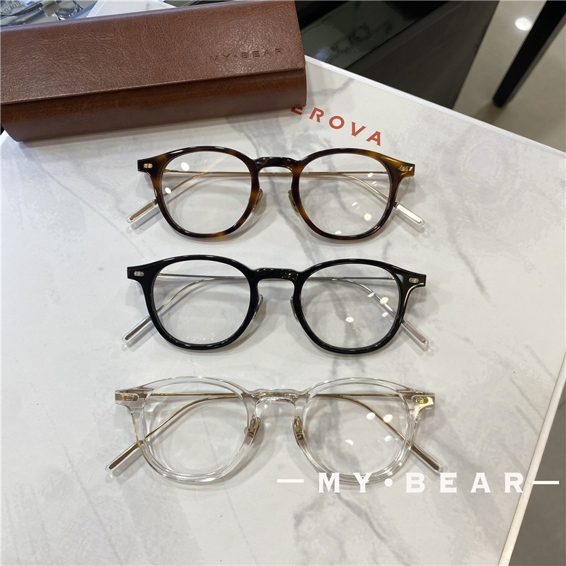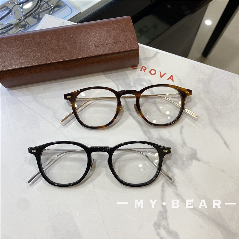 新品手工造方圆复古玳瑁眼镜框板材纯钛文艺方圆男女高度数眼镜架