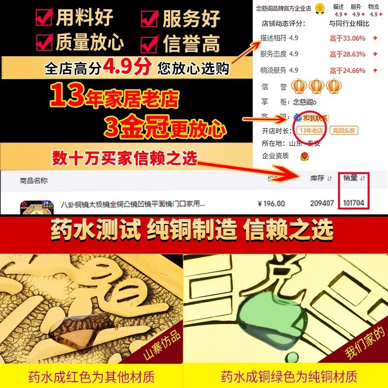 八卦凸镜门口窗户黄铜太极凹凸平面镜子家用大门客厅店铺摆件挂件