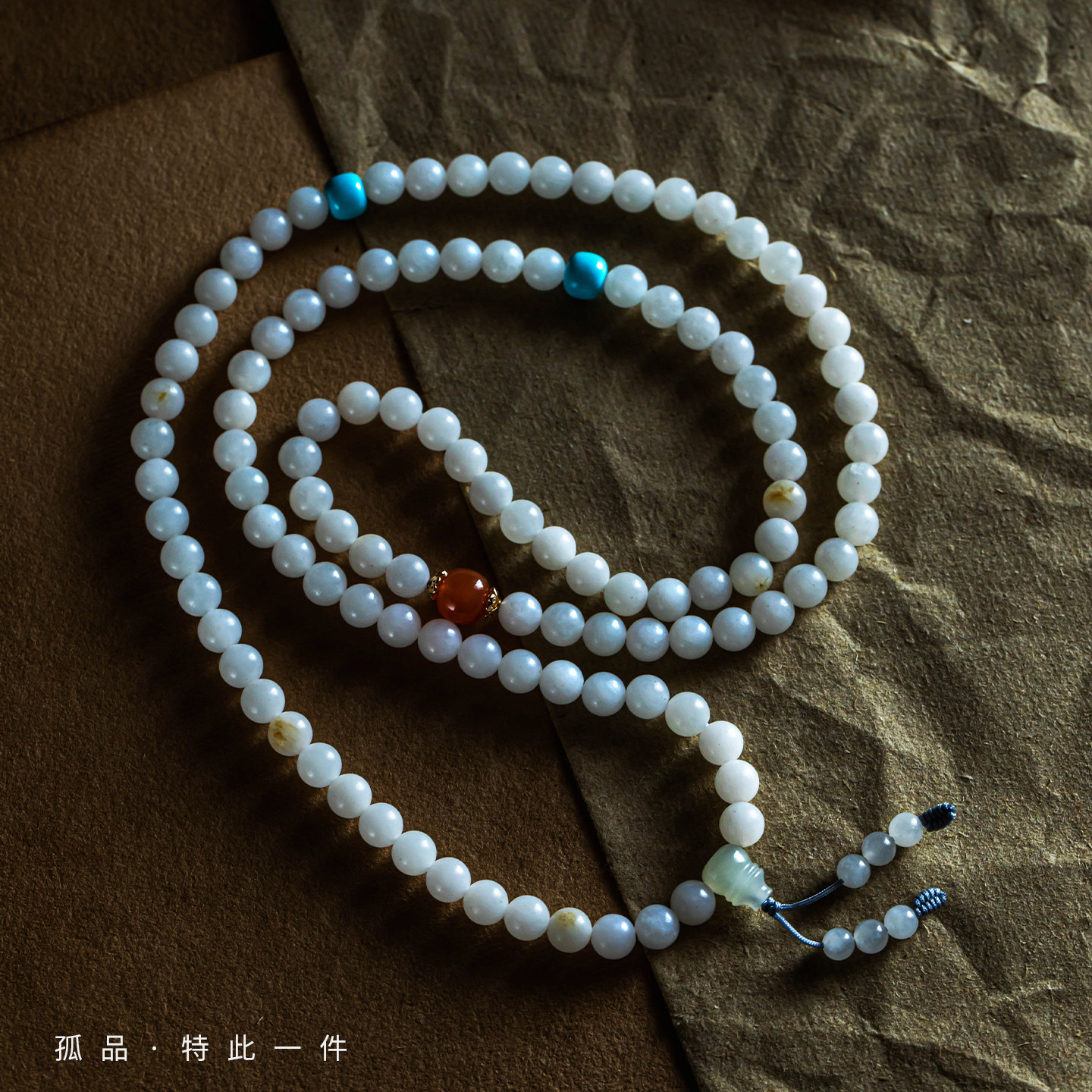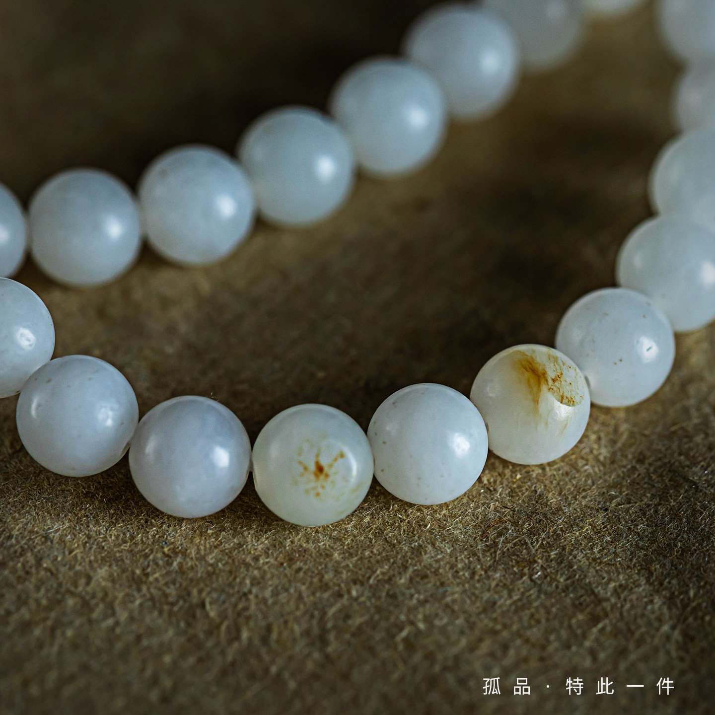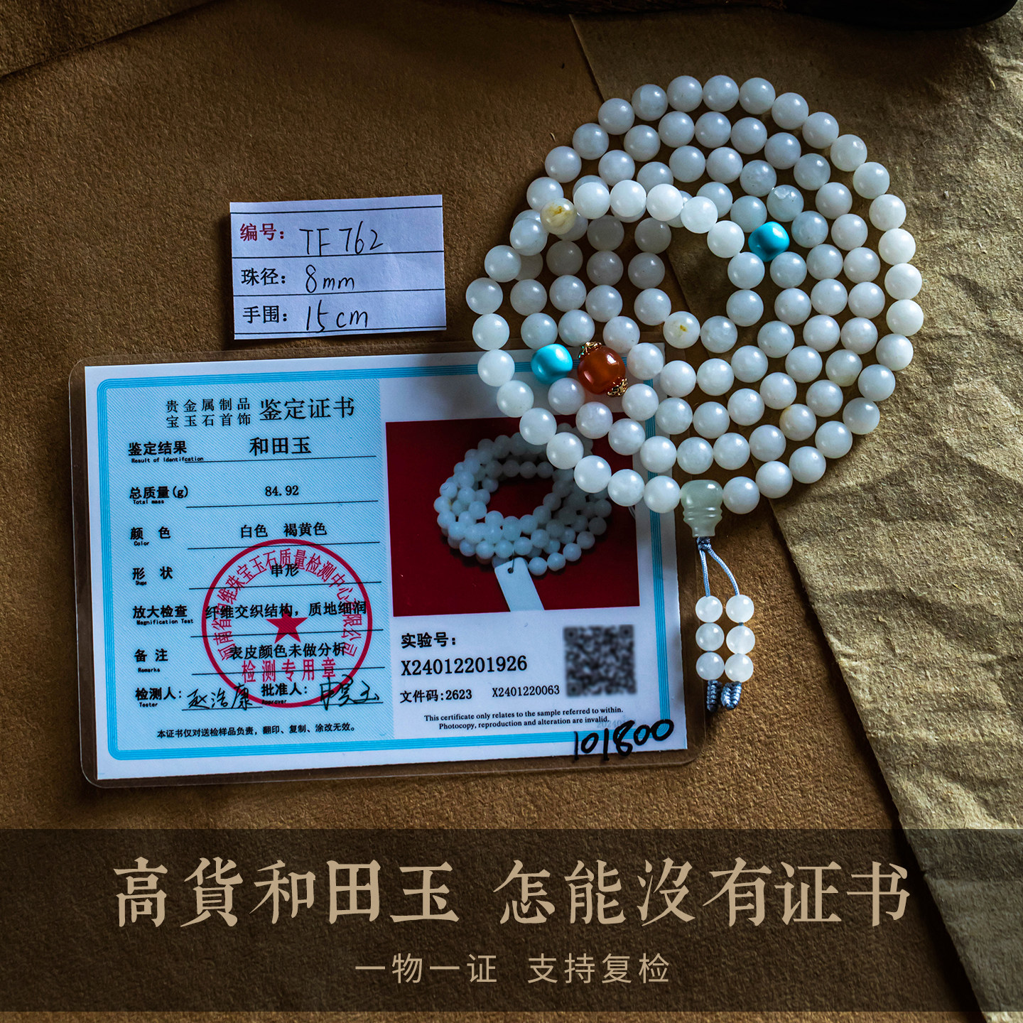 【孤品-浅川】和田玉白玉多圈手串菱镁矿绿松石手链礼 一物一证
