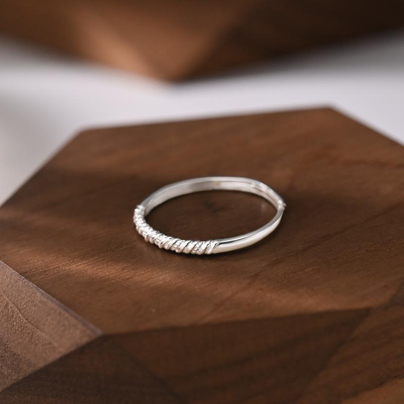 S999足银麻花戒指女纯银小众设计感高级轻奢食指戒开口可调节指环