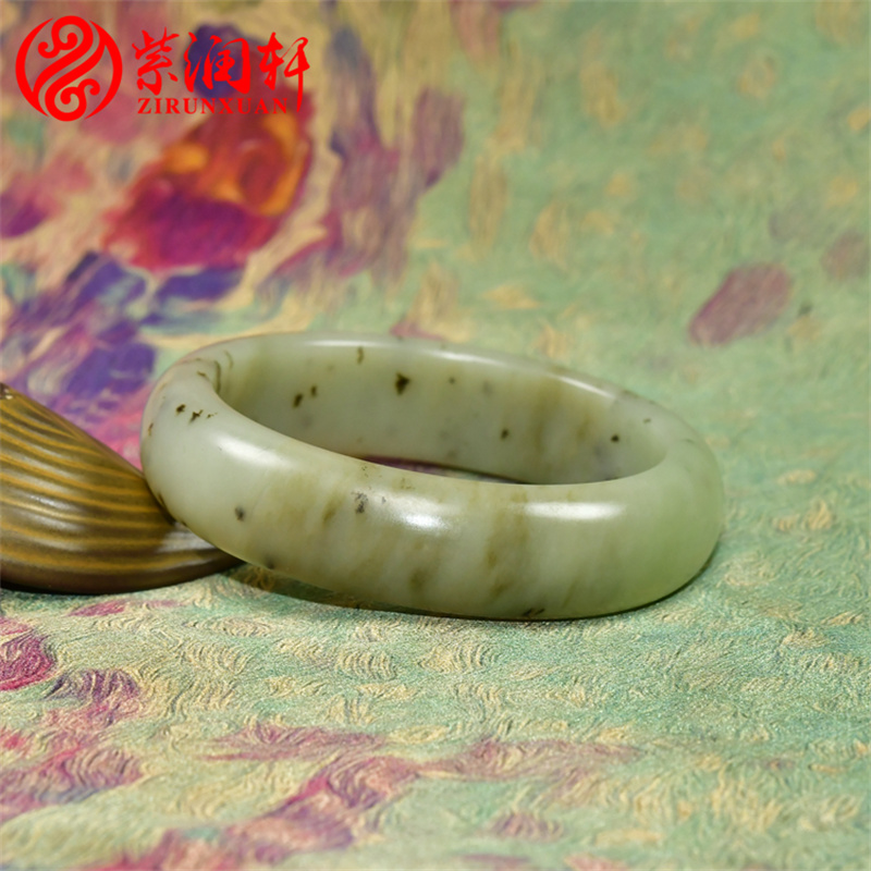 紫润轩新疆和田玉糖青白飘翠手镯山流水61 5MM宽版三色镯子收藏级