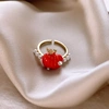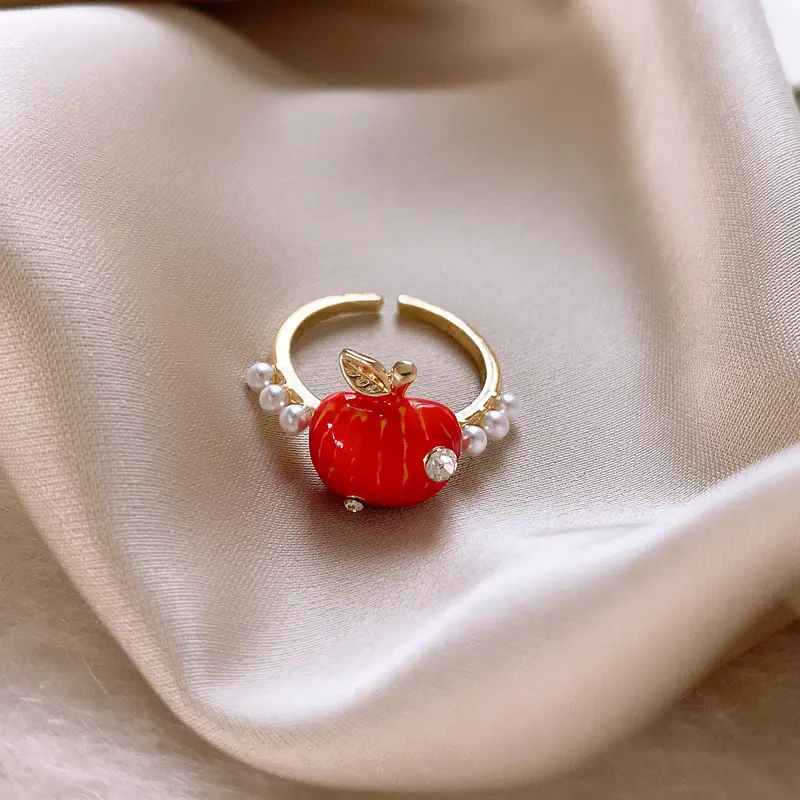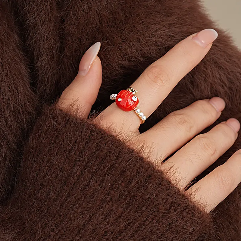 红色滴油珍珠款开口戒指小众设计感食指戒童趣可爱高级感手饰