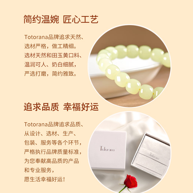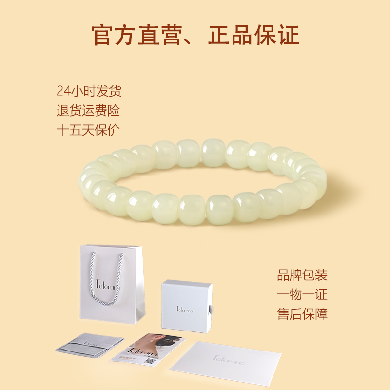 天然和田玉手串冰底黄口料女款桶珠青白玉手链女士礼物正品带证书