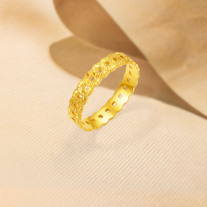 周六福黄金5G计价足金戒指财源滚滚碎碎金满圈铜钱女戒圣诞礼物