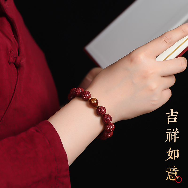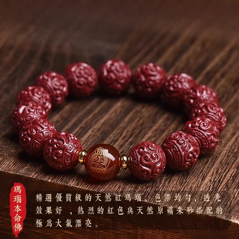 普陀山高含量朱砂手串天然原矿佛珠手链本命手串男女本命年红玛