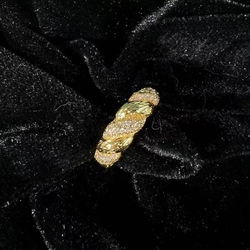 【K社制造】拉丝工艺中古风格麻花镶钻红色开口金戒指