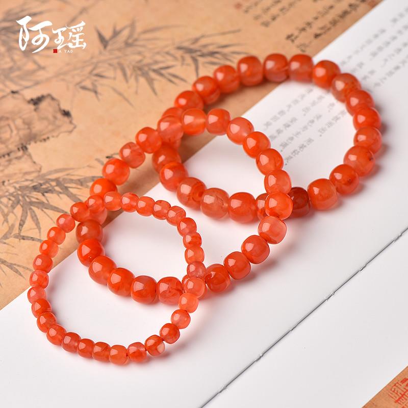 天然原矿四川凉山冰飘南红老型珠桶珠老形星月菩提饰品手串链