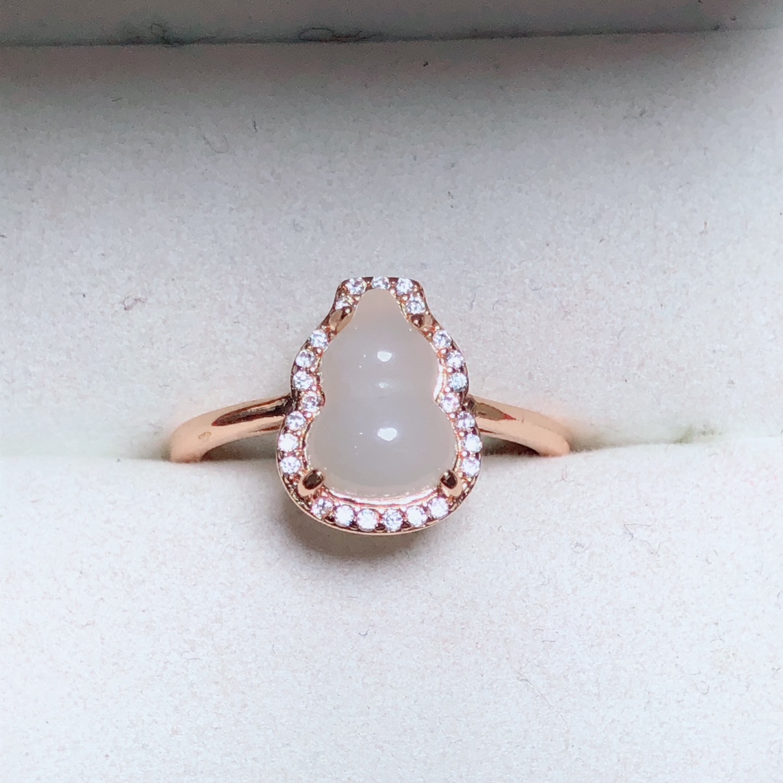 U357天然和田玉葫芦活口戒指百搭流行女款时尚戒指镶嵌款可送女生