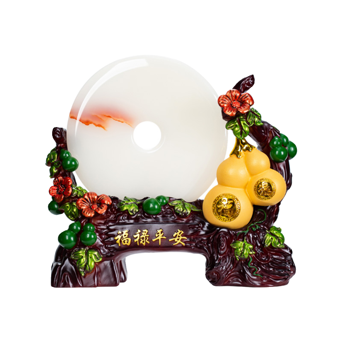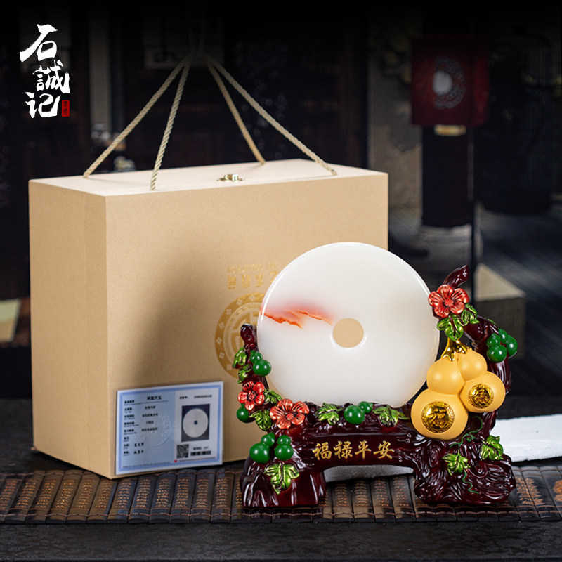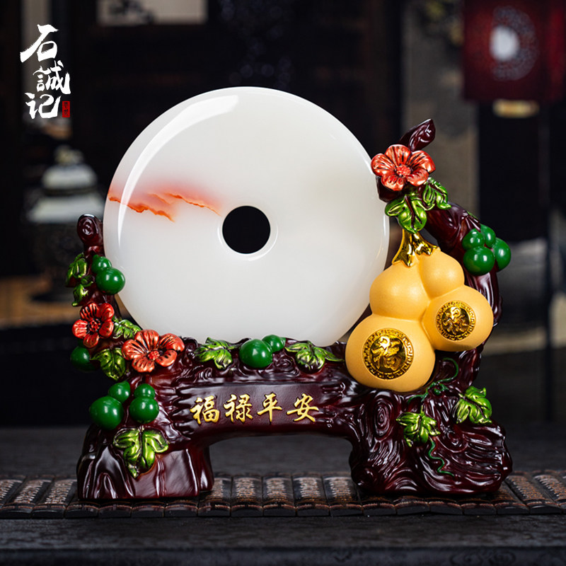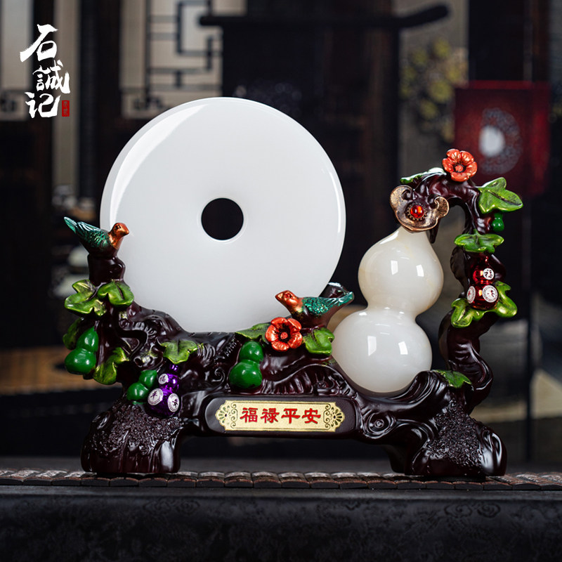 石诚记天然玉石平安扣摆件福禄葫芦摆设桌面装饰乔迁开业创意礼品