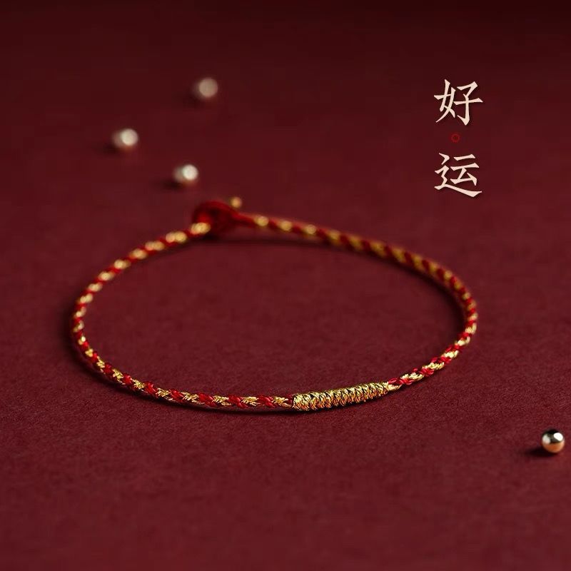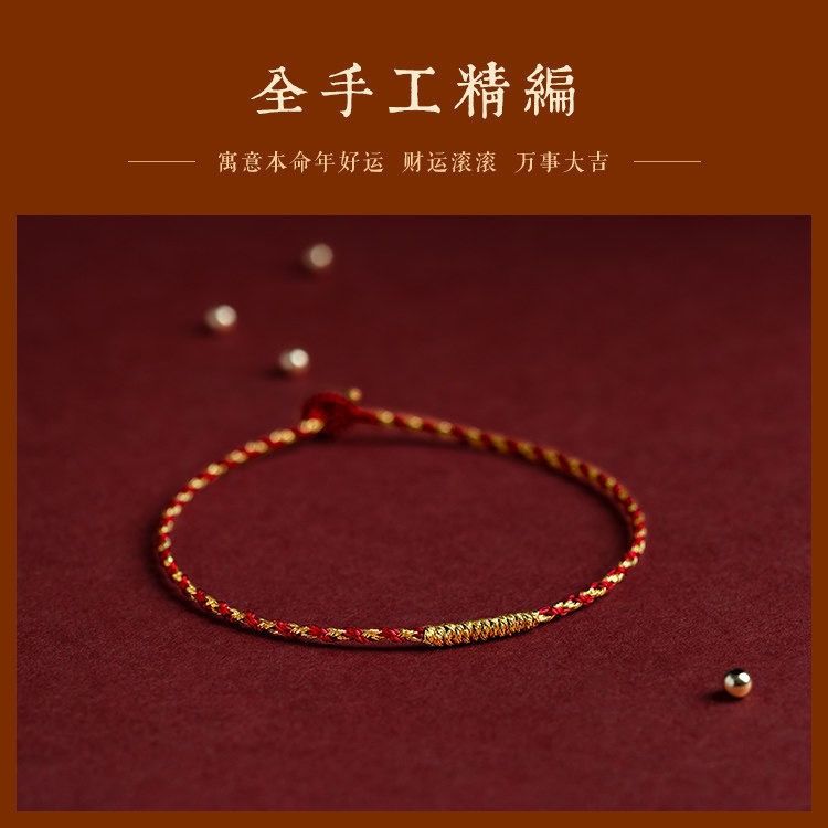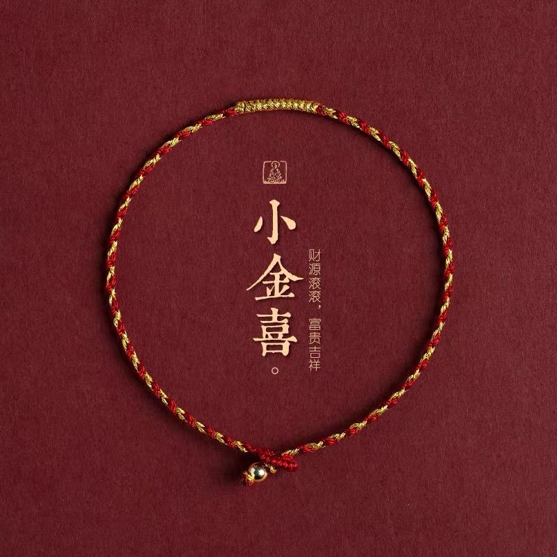 2毫米细手工编织小金喜红金相间金刚结手绳脚绳可定制秀气