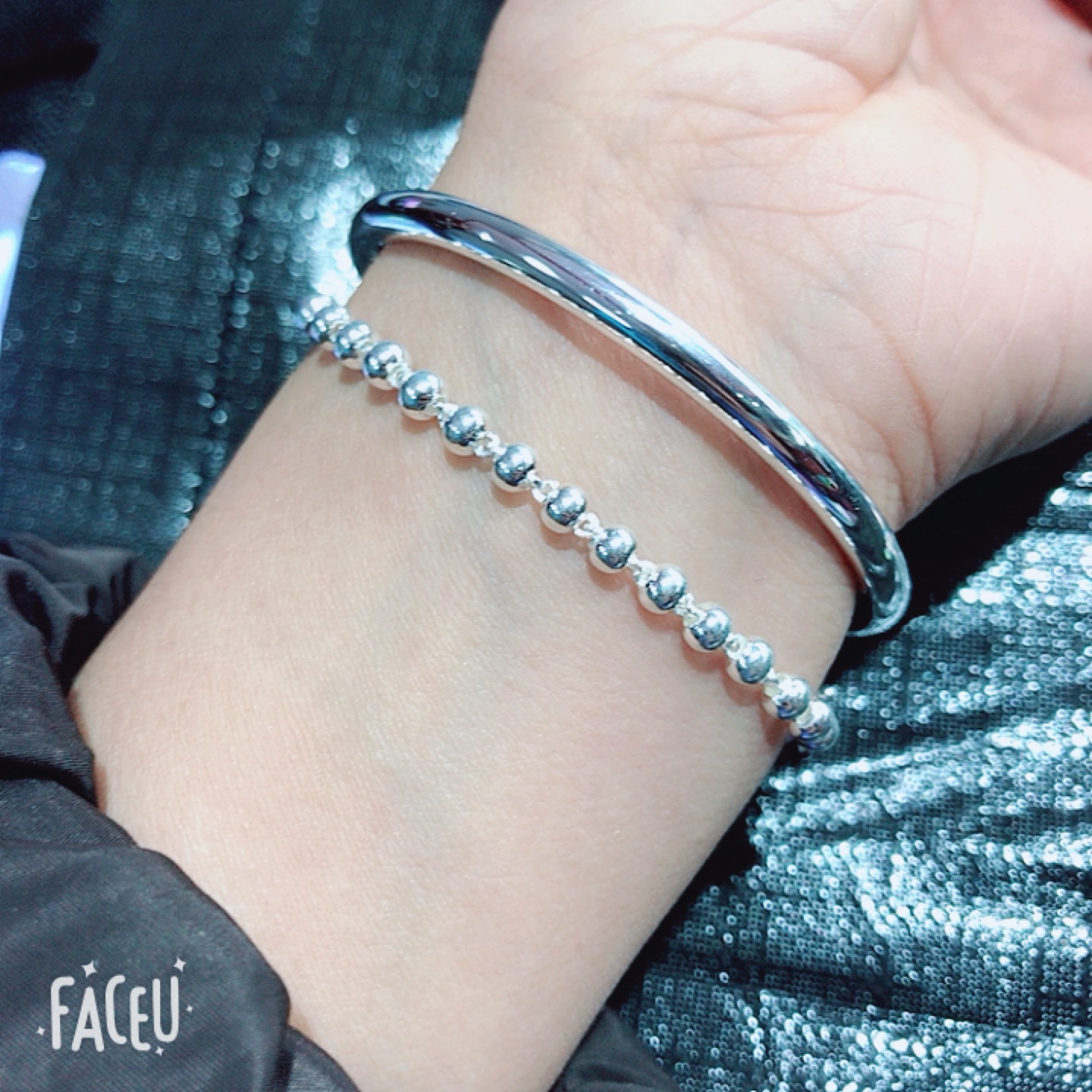 足银999经典纯银手镯实心古法手镯纯手工光面银手镯甜甜圈定制
