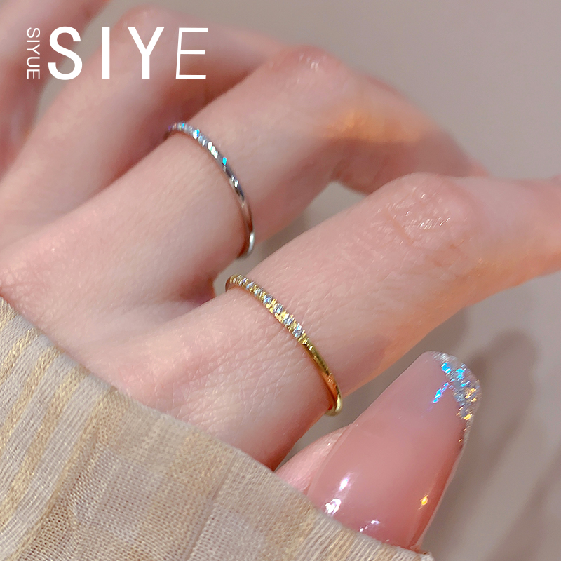 SIYUE/定制不掉色 镀16k金素圈镶钻戒指百搭叠戴轻奢日常食指戒女