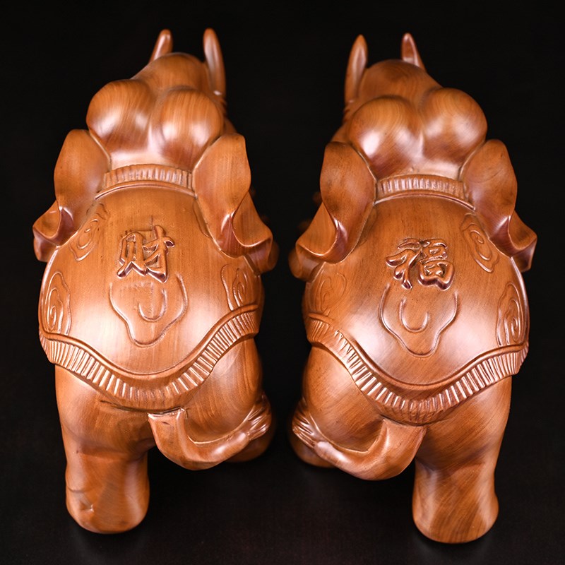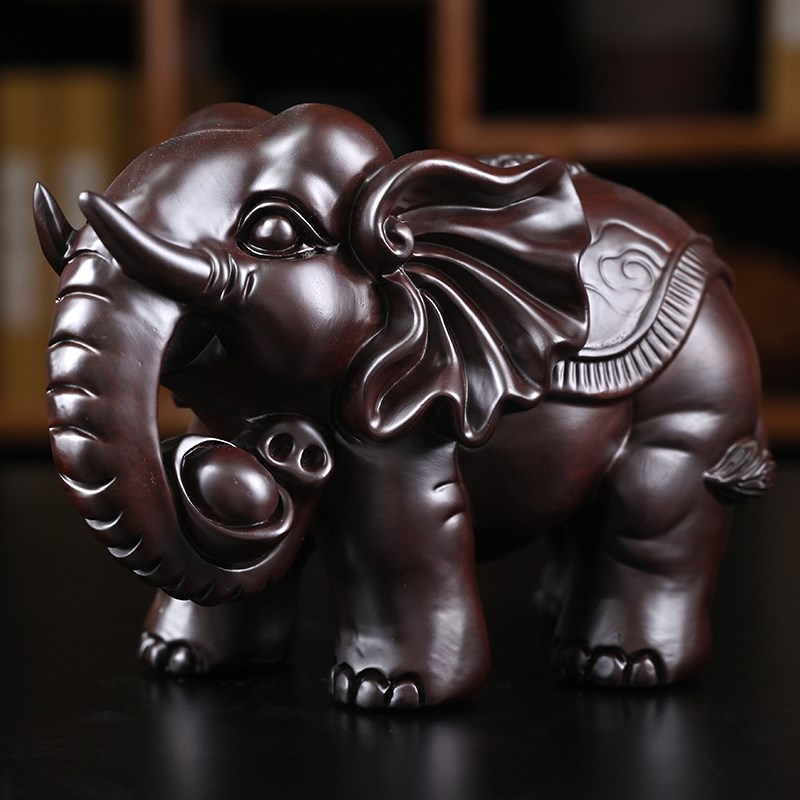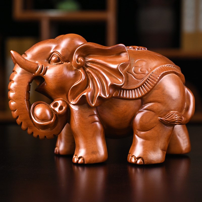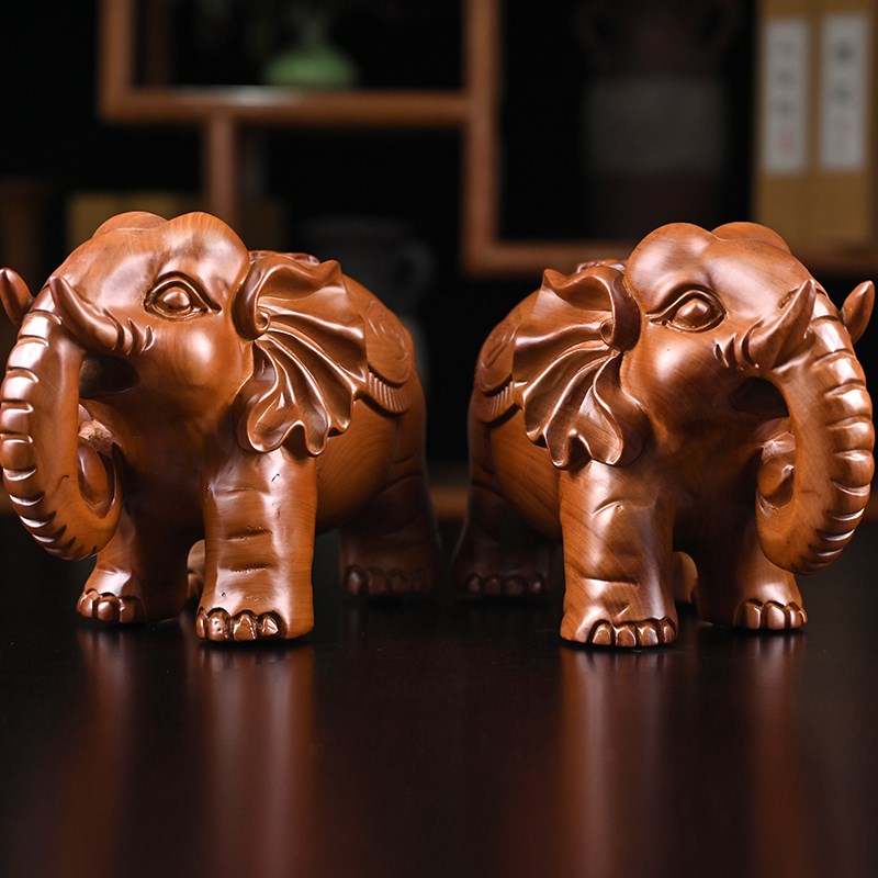 实木雕大象摆件一对木质t招财元宝象家居客厅电视柜办公室装饰礼