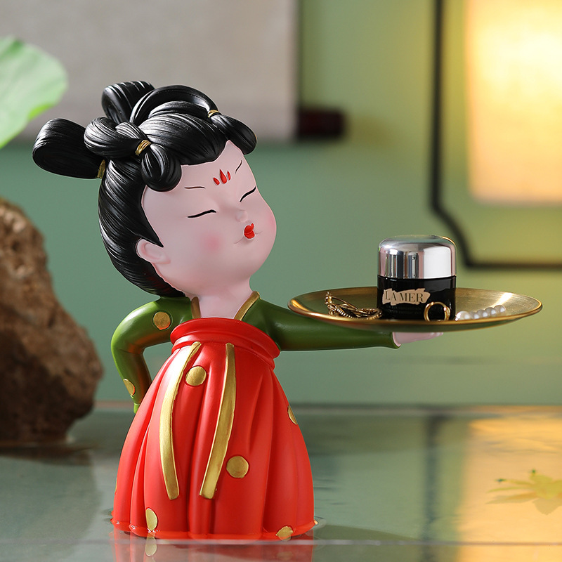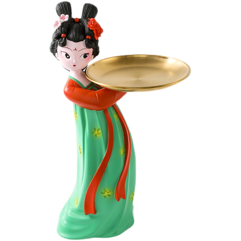 玄关钥匙收纳摆件创意仕女托盘y唐宫夜宴侍女客厅电视柜家居装饰