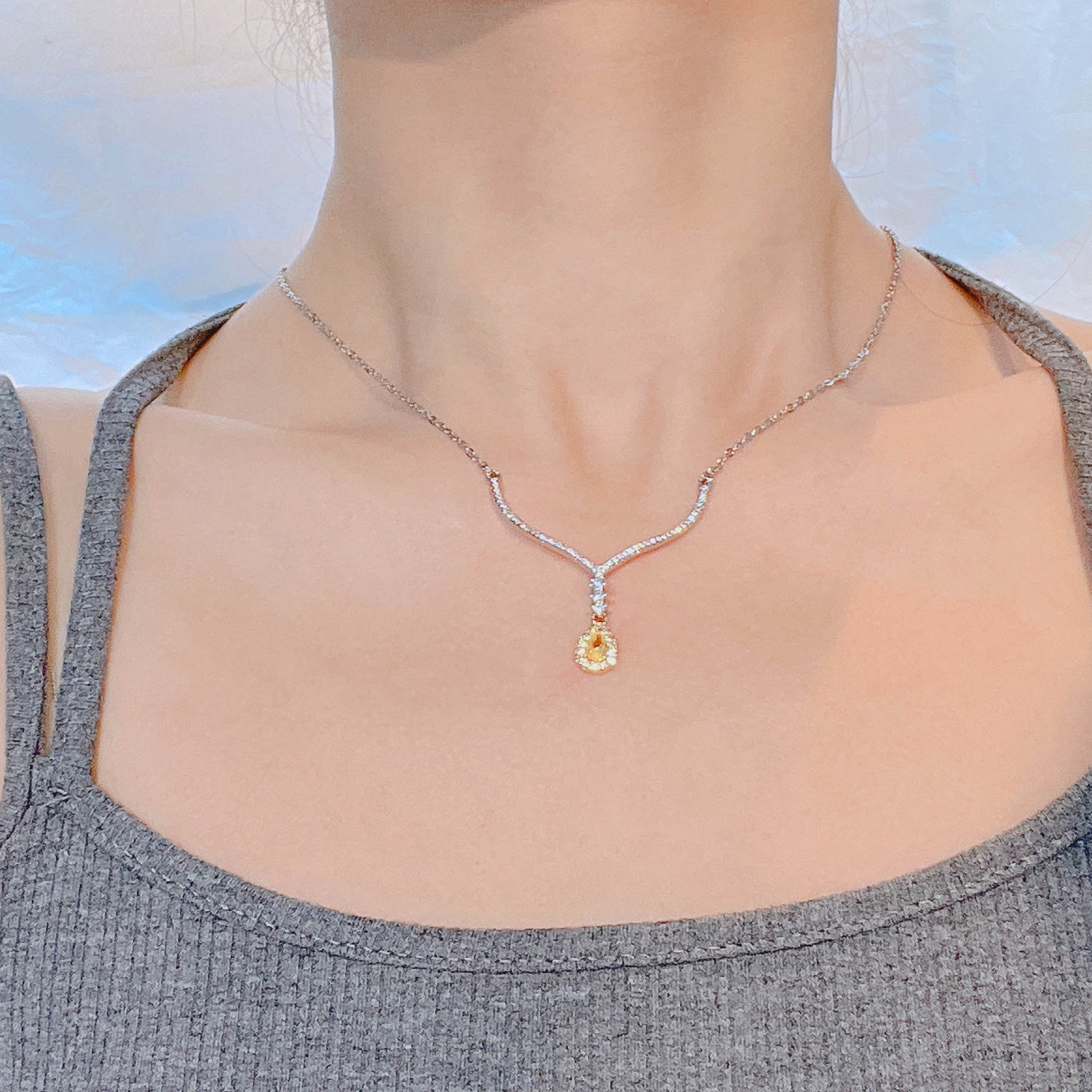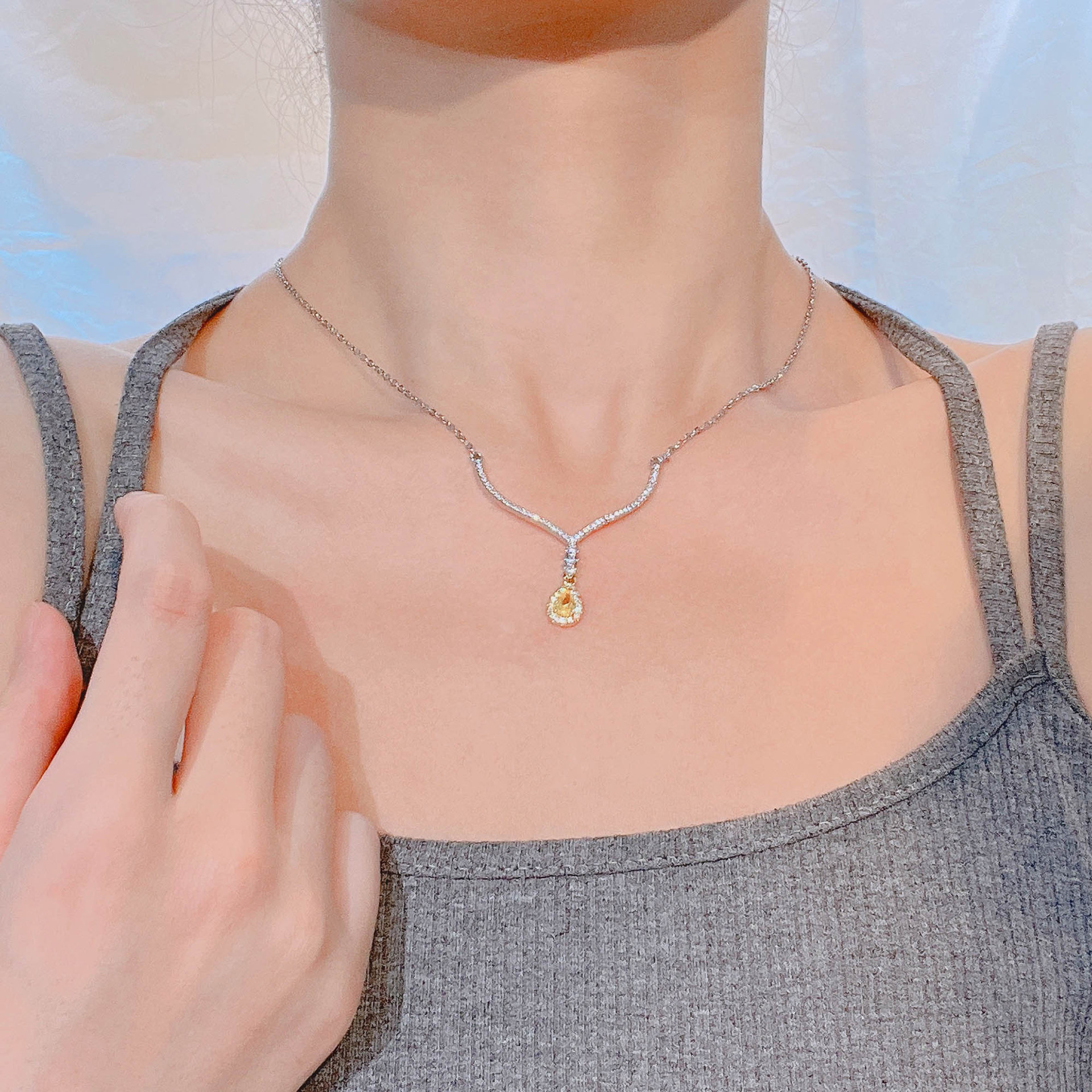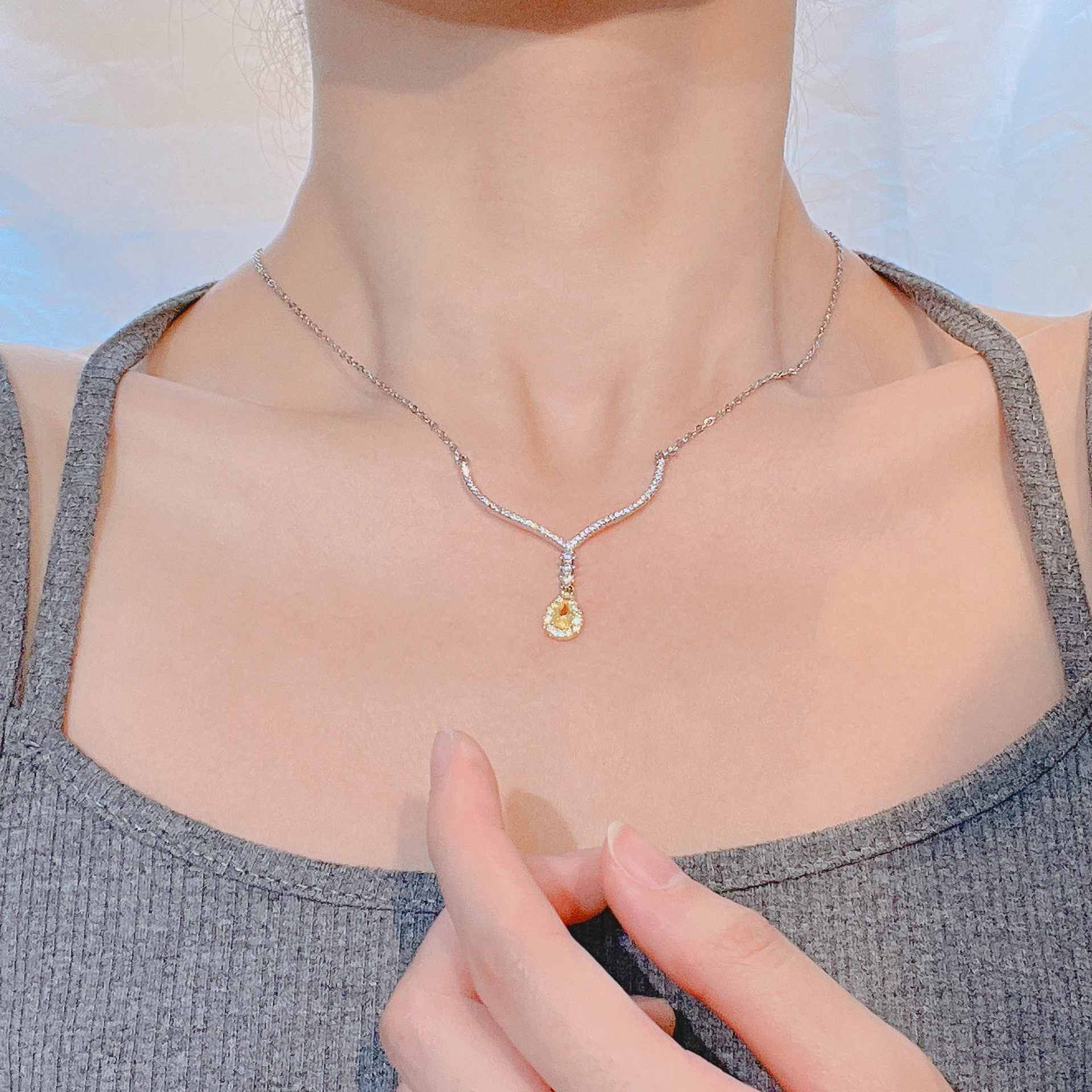 Young小红书网红水滴梨形黄钻项链 轻奢日常小众设计小彩宝吊坠女