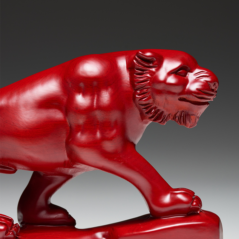 红色老虎摆件上山虎老虎摆件实木生肖虎装饰客厅收银台办公工艺品