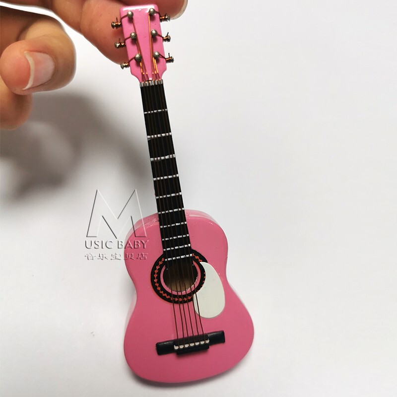 x1aw手工木质电吉他模型摆件桌面娃娃乐器10cm迷你民谣吉他电贝
