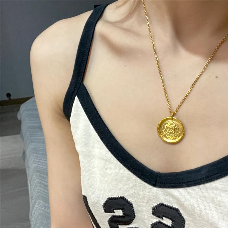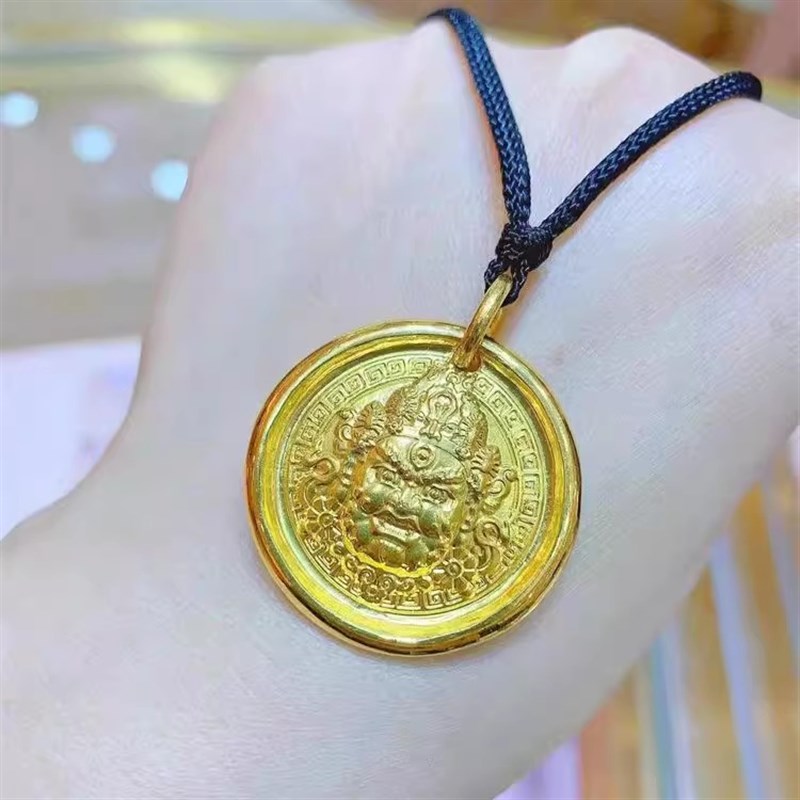 古法金包银黄财神吊坠锤纹项链男女圆牌招财锁骨毛衣链送生日礼物