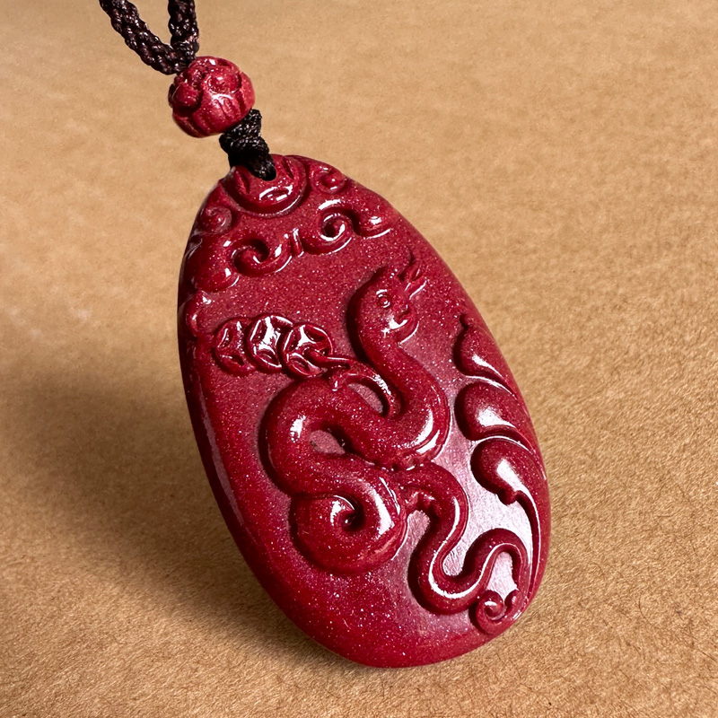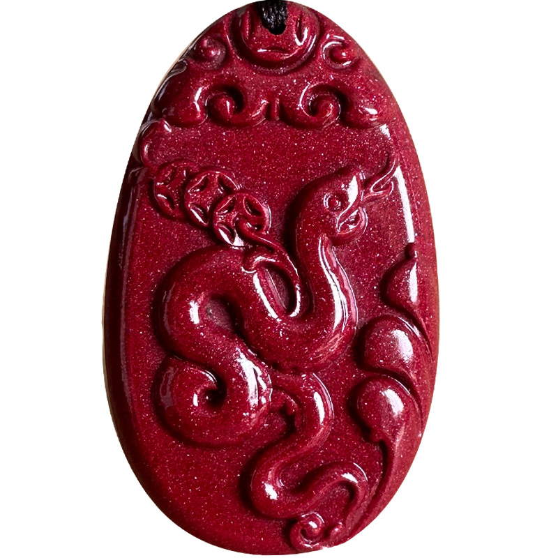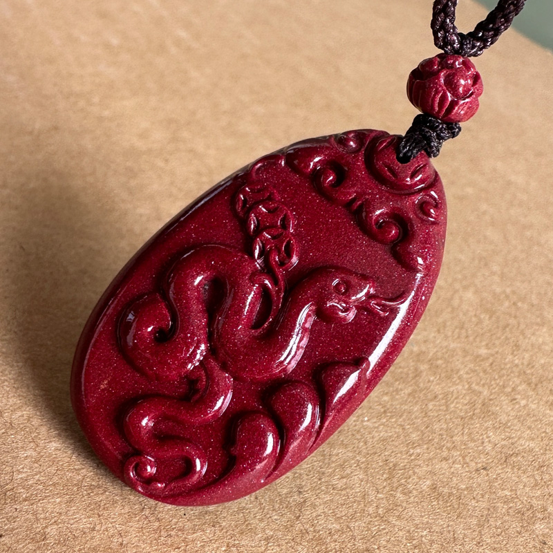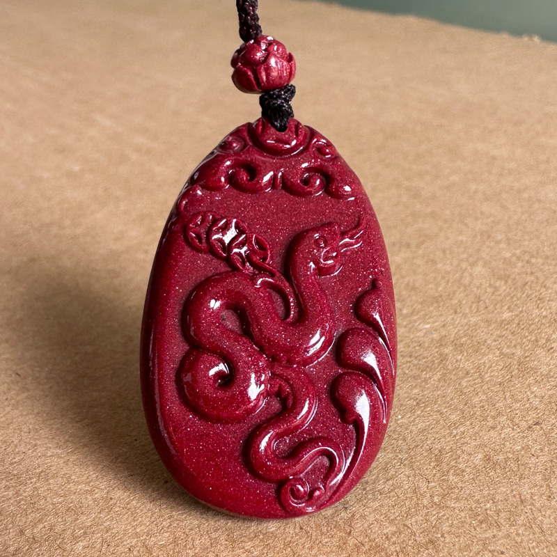 保真原矿紫色朱砂卷财蛇吊坠 男女随身双面吉祥如意蛇挂件坠子