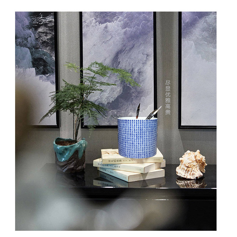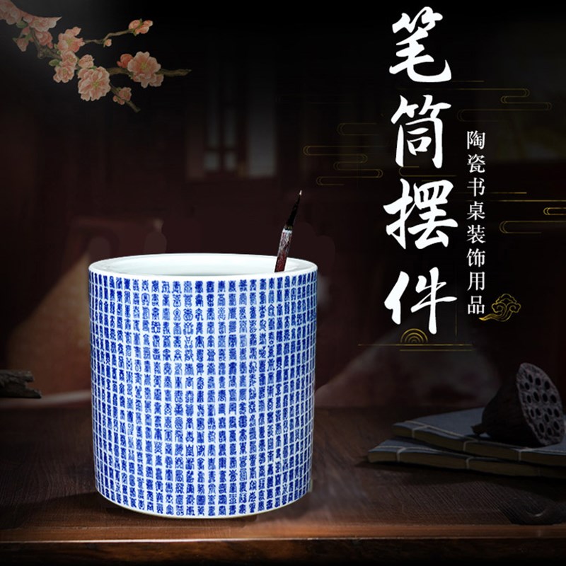 景德镇陶b瓷青花瓷桌面收纳毛笔画笔复古笔筒摆件仿乾隆年制纯手