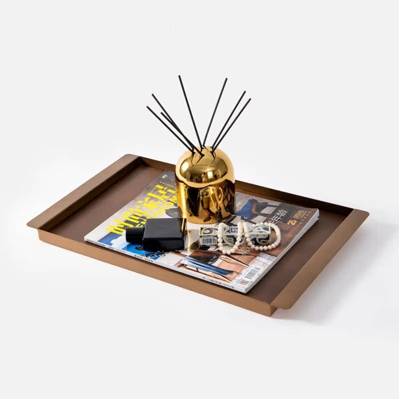 简约现代轻奢金属实木托 讬v盘摆件样板间酒店饭厅客厅茶几桌面收