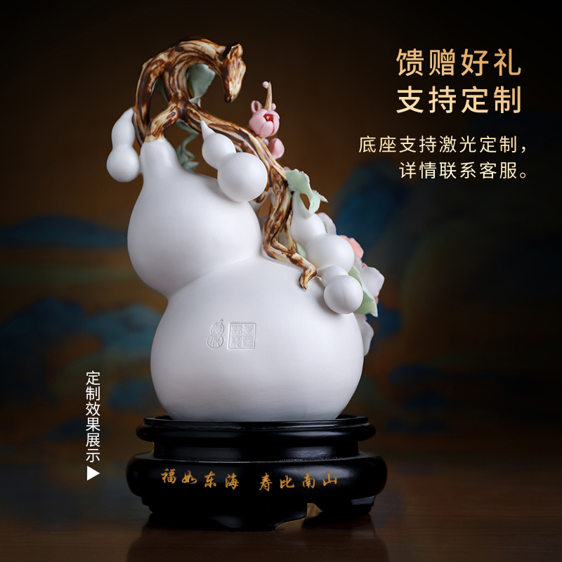葫芦招财摆件陶瓷非遗手工花客厅家居办公室酒柜装饰乔迁礼品送礼