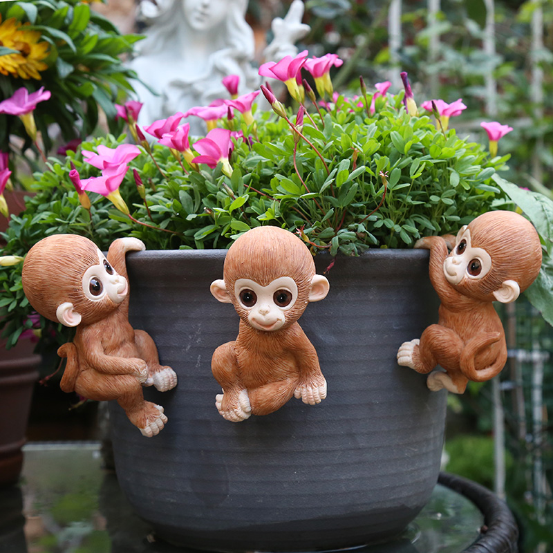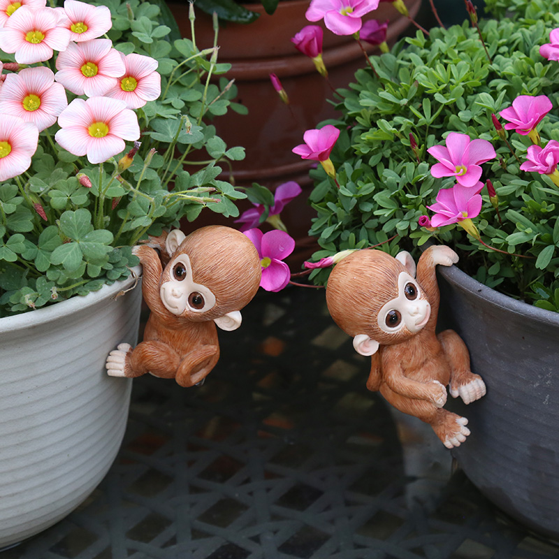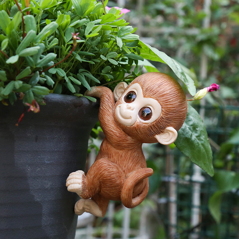 创意挂盆小e猴子仿真小动物摆件户外庭院盆景装饰品小摆件园艺摆