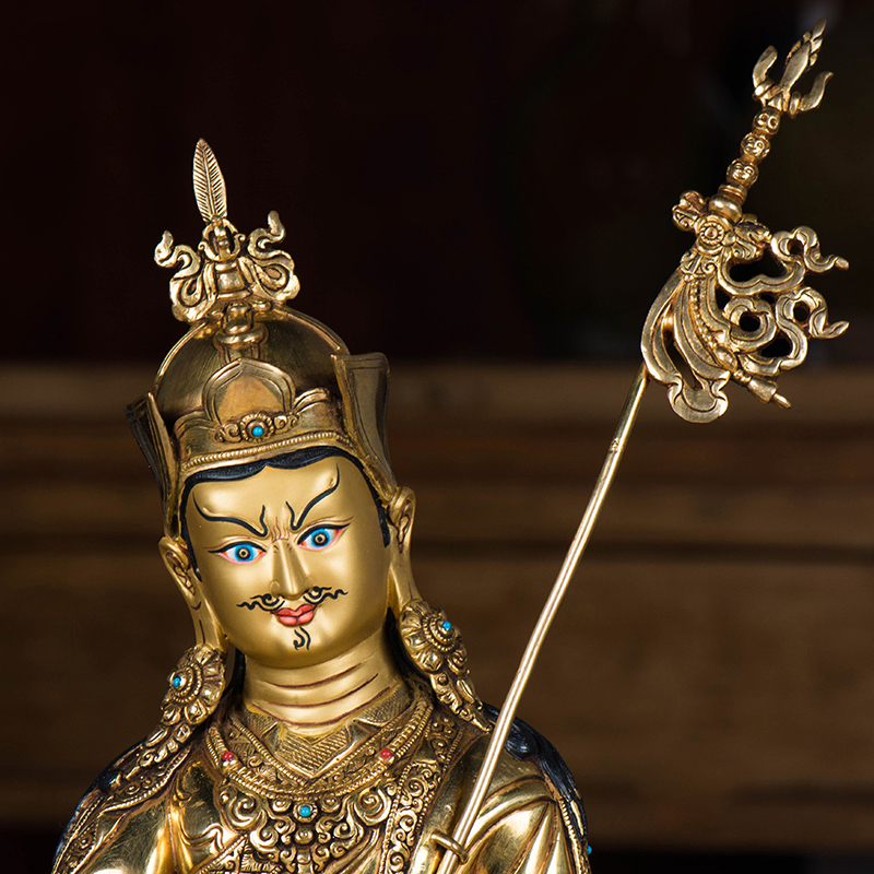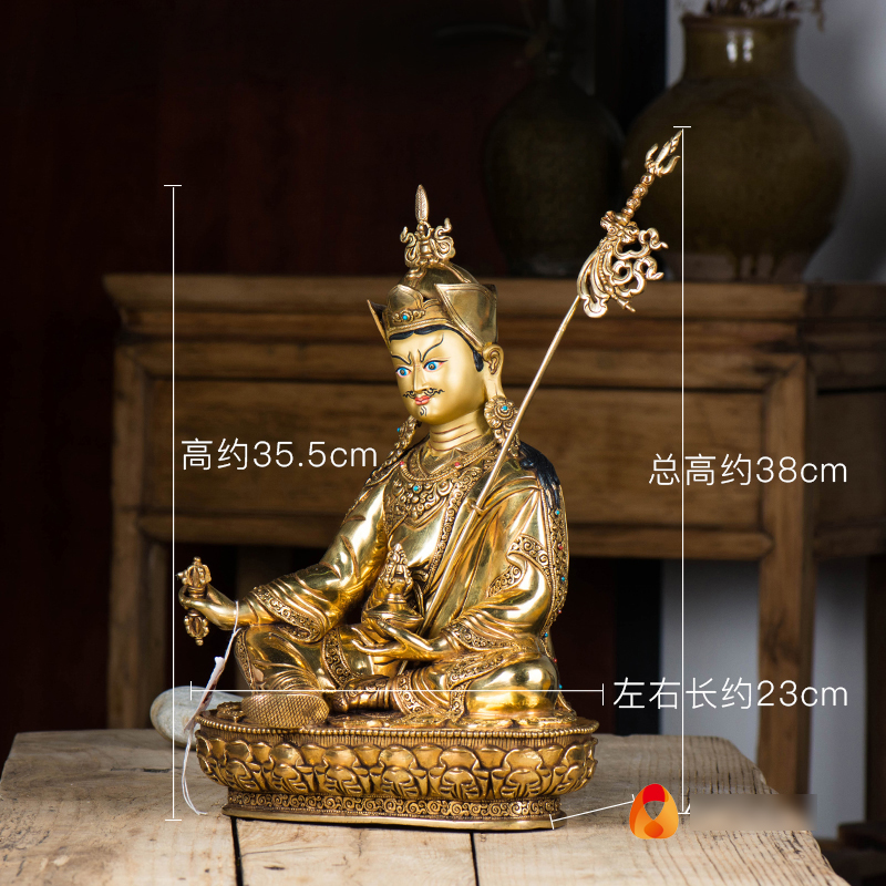莲花生大士家用尼泊尔10寸铜鎏金现代用品莲花生大士摆件