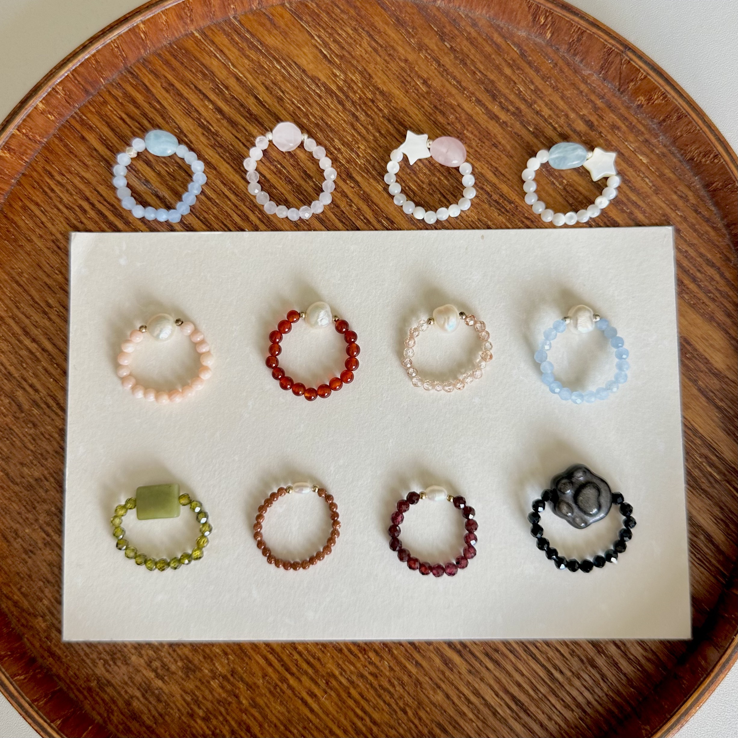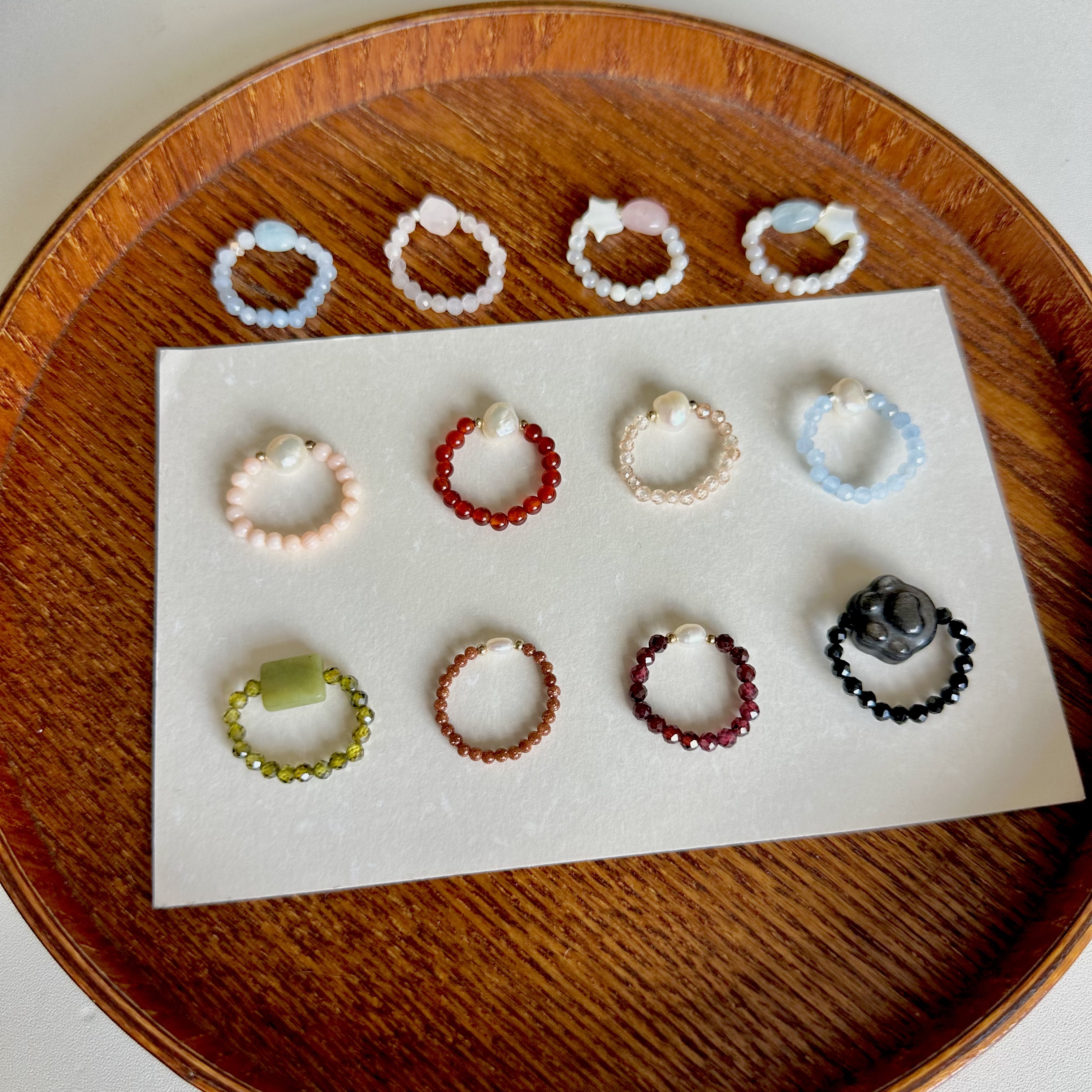 美国14K注金手工串珠戒指百搭文玩指环新中式天然石食指戒可定制