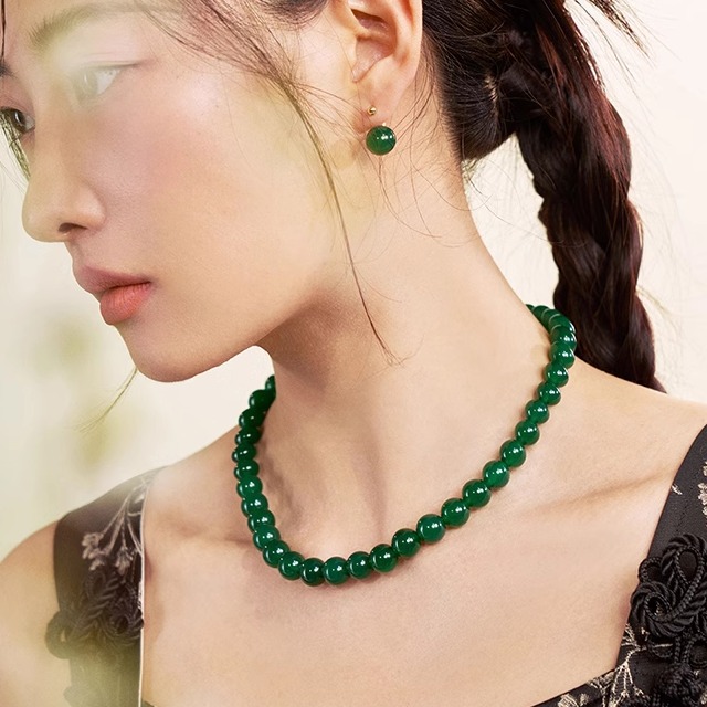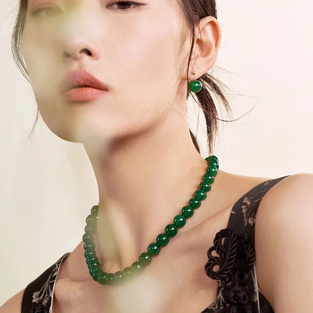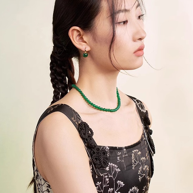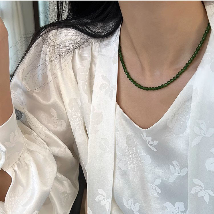 ZEGL绿色玛瑙串珠新中式项链女款2024新款锁骨链925银颈链配饰