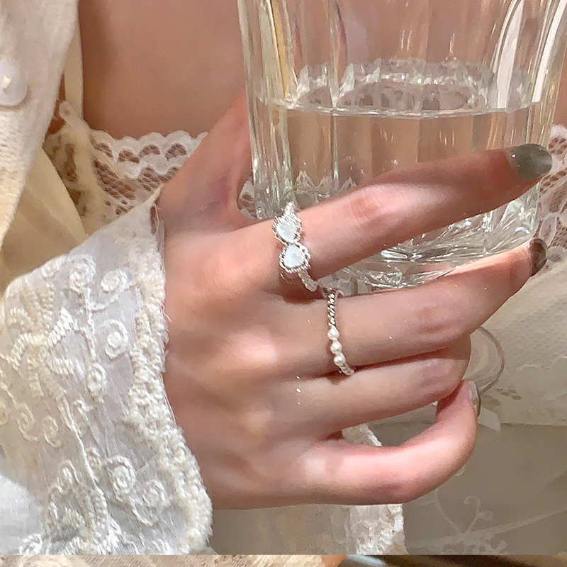韩系甜美仿猫眼蝴蝶结珍珠戒指温柔气质食指戒高级感百搭叠戴指环