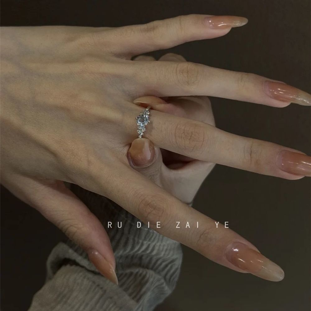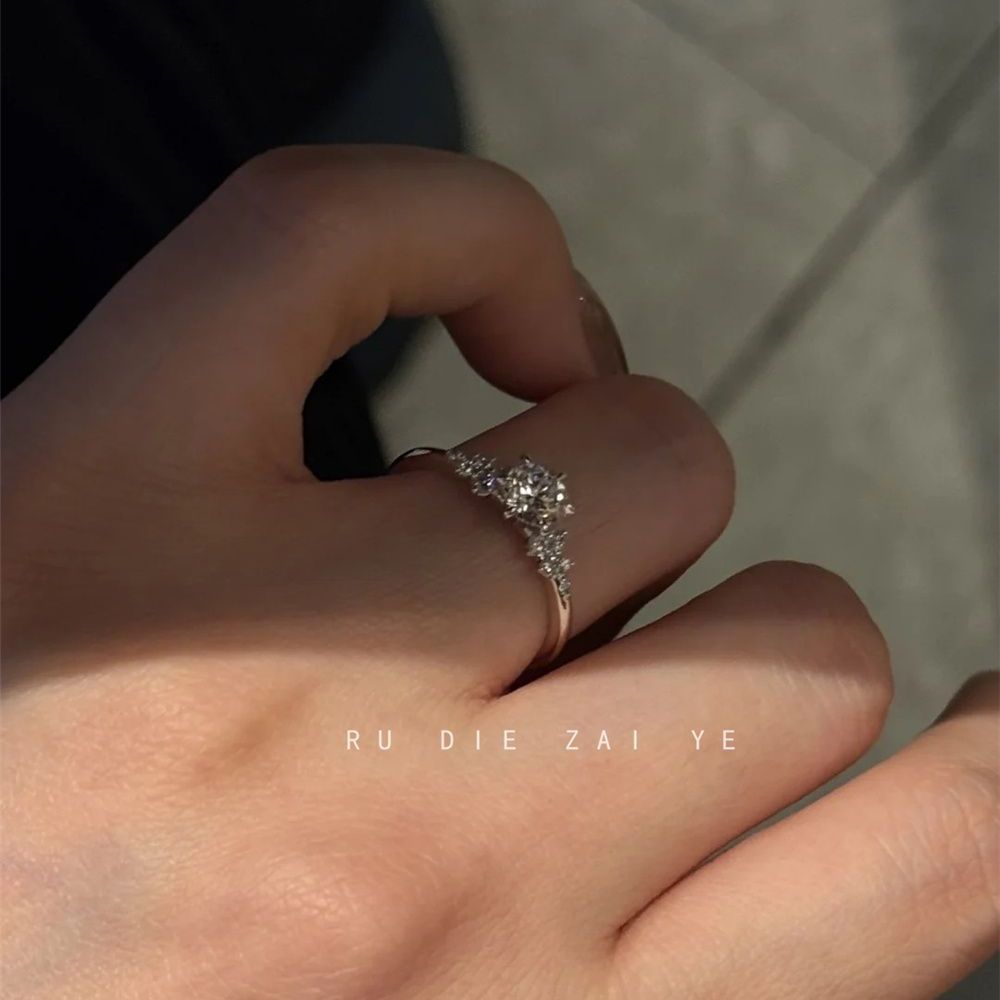 如蝶在野 情书~清冷感经典闪钻锆石戒指温柔气质轻奢高级感开口戒