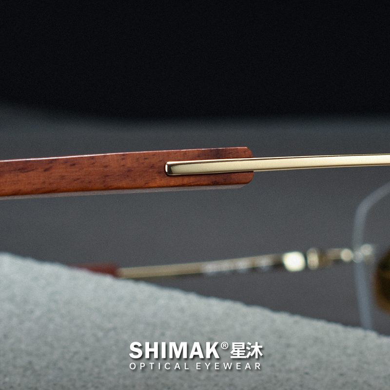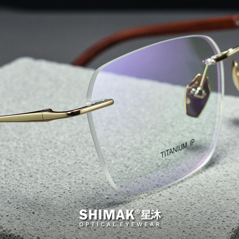 商务超轻方形无框近视眼镜男款大脸纯钛檀木腿高端可配有度数变色