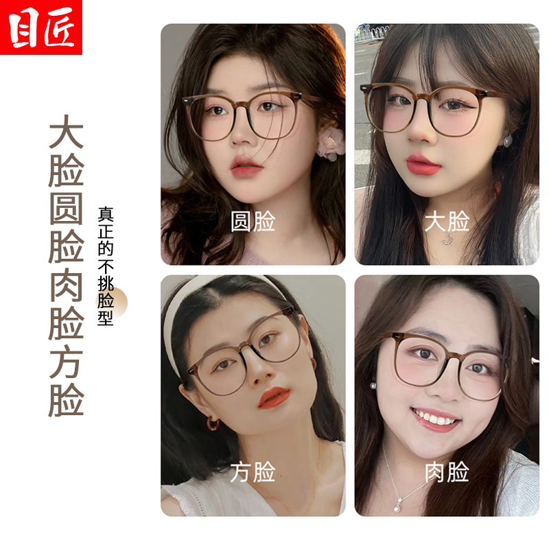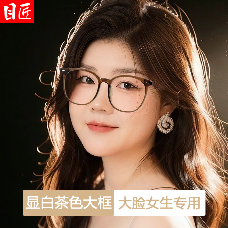 大脸专用冷茶色近视眼镜框女超级超大框可配度数方圆脸显脸小镜架