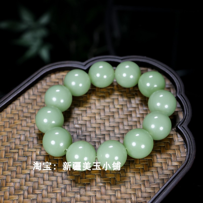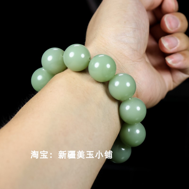 新疆和田玉白玉手串天然玉石青白玉手链青玉18mm手珠散珠佛珠念珠