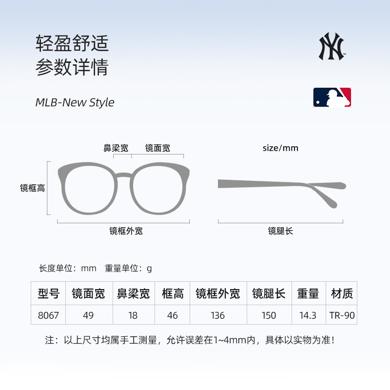 MLB眼镜框黑色大框潮流百搭女可配近视防蓝光韩版男眼镜架 NY8067